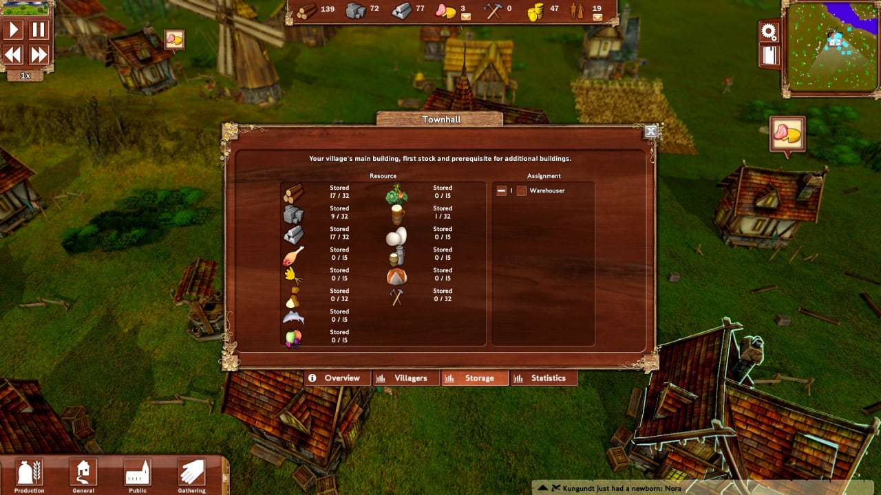 Вокруг вашего поселения будут находиться ресурсы, доступные для добычи. Чтобы постоянно совершенствовать город, а не оставлять дома блуждать в зимних ночах, нам придется собирать ресурсы и отстраивать новые дома, прочие сооружения, и заставлять людей работать на благо процветающего общества. Среди прочих, у людей будут такие нужды, как обязательный резервуар с водой, амбар, где пропитания хватит на несколько дней вперед. Также люди останутся довольными, если вы предоставите им рабочие места.