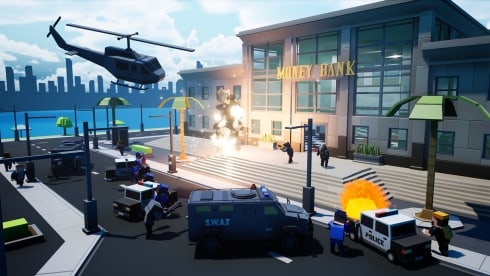 Block Heist - это динамичный криминальный шутер от 3-го лица, который принесет вам адреналин и заставит сердце биться чаще. В этом уникальном экшене вам предстоит совершать дерзкие ограбления и бороться с ордами полицейских и спецназовцев, которые будут стоять на вашем пути. Вы будете сверлить сейфы, ждать фургоны и убегать с награбленным, все это в мире, где на каждом углу может оказаться опасность. Каждое прохождение игры уникально, и вы можете выбирать оптимальную для себя стратегию. При этом вы можете индивидуализировать своего персонажа, выбрав лучшие скины, маски и бронежилеты. Для создания более оригинального образа грабителя вы можете выбрать снаряжение, которое будет использовать каждый член вашей команды.