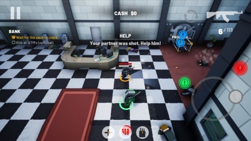 Музыка в игре также не оставит вас равнодушным. Драйвовые саундтреки будут сопровождать вас на протяжении всей игры. Кроме того, вы можете выбирать из огромного выбора оружия - от пистолетов до винтовок, а также использовать множество разнообразных экземпляров холодного оружия. Но самое важное - это неповторимый игровой стиль, где противостояние между бандитами и полицейскими выглядит настолько реалистично, что вы будете чувствовать себя настоящим грабителем. Покажите свои навыки и пройдите путь от обычного воришки до легендарного грабителя в мире Block Heist.