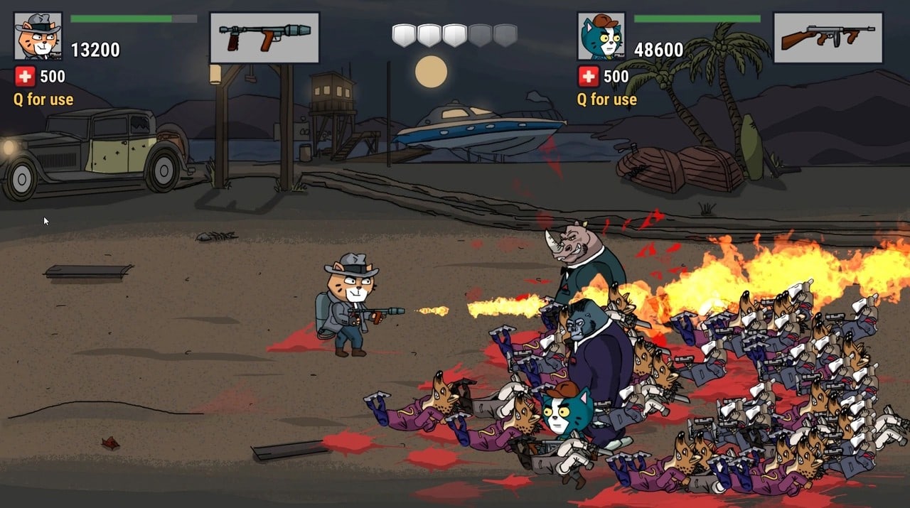 CatMafia - это забавный криминальный шутер с элементами слешера в стиле мультяшного нуара! Ты окажешься в шкуре хитрого и мудрого кота, который должен выполнить сложную задачу по воровству огромного алмаза «Кошачий глаз» с опасного острова «Каменный клык». По пути к цели тебе придется противостоять сворам волков, шакалов, мышей и других опасных противников, которые многократно превосходят тебя силой. Но не отчаивайся, ведь у тебя есть шанс победить! Зарабатывай очки, покупай новое снаряжение и аптечки, чтобы дойти до финальной битвы с самым толстым и страшным врагом.