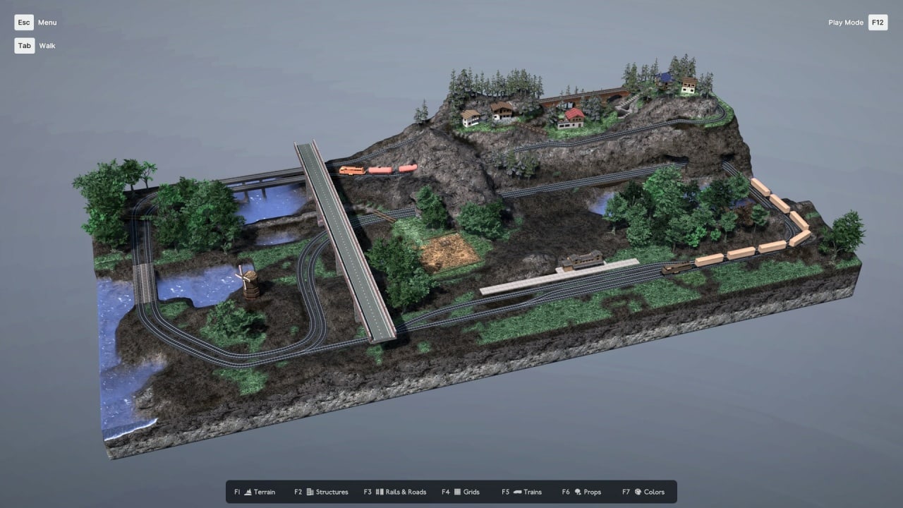 Но на этом игра не заканчивается - вы также можете добавить деревья, кустарники, пластмассовых людей, дома, мосты, статуи, памятники, особняки, замки, башни, маяки, квартиры и виллы, акведуки и многое другое к вашему шедевру. Вы будете поражены тем, что можно создать из маленьких блоков дерева и камня. Откиньтесь на спинку кресла, расслабьтесь и наслаждайтесь видом, пока ваши крошечные поезда движутся вдоль вашего величественного творения. Пришло время дать волю воображению и построить мир, который действительно является вашим собственным.