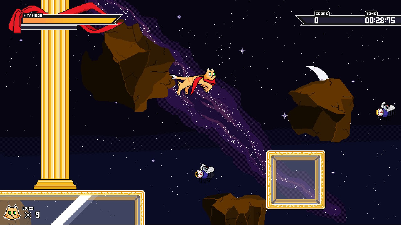 Nyanroo The Supercat - это увлекательный экшен-платформер, который перенесет вас в 16-битную эру. Но это не обычная игра - вы будете выбраны волшебной нитью, чтобы сразиться со злыми собаками, которые пытаются завоевать мир. Между вами и победой стоят 14 этапов и 7 боссов, но благодаря нитям силы, разбросанным по всему миру, у вас будут способности, необходимые для того, чтобы прорубать и пробивать себе путь через каждый уровень. А поскольку на кону стоит судьба мира, для достижения успеха вам придется выложиться по максимуму.