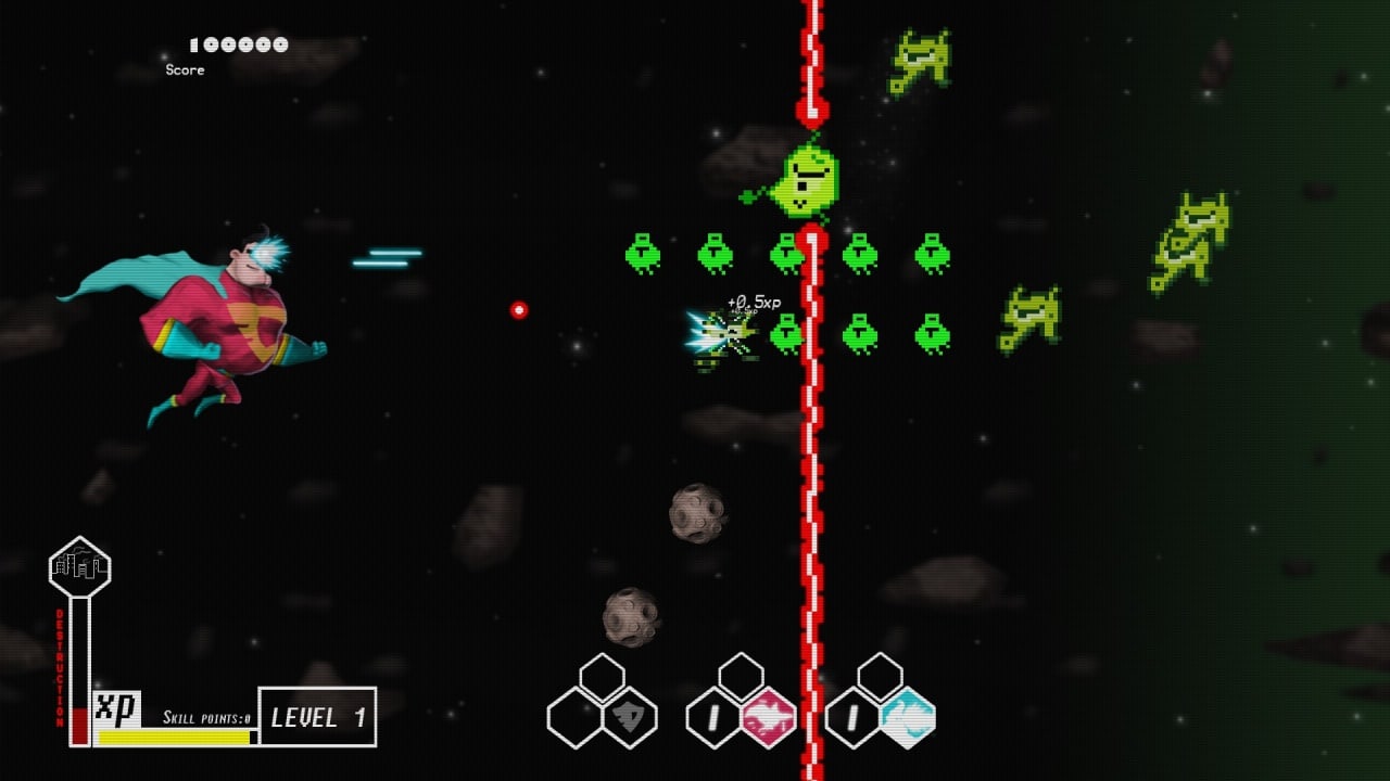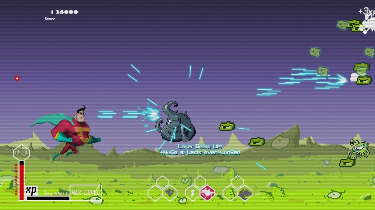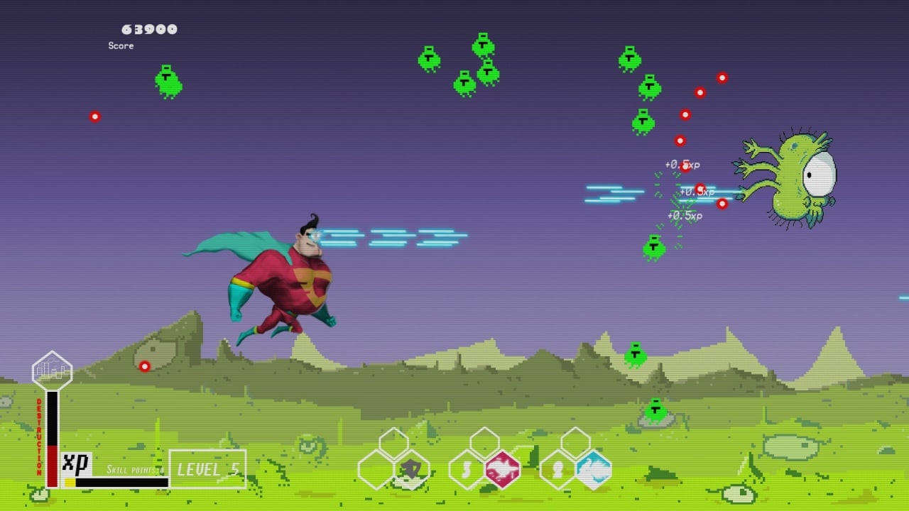 Вас ждут захватывающие бои, где вы используете свои суперспособности, такие как Металлическая Форма, Лазерный Луч и Световая Скорость, чтобы победить врагов. Набирайте опыт, сражаясь с противниками, и повышайте уровень своих Супер Способностей так, как вы считаете нужным. Здесь нет жизней! Вы невидимый супергерой, и ваша задача - защищать свой город, Землю и даже Галактику, иначе игра закончится. Пройдите через 8 различных уровней в Режиме Истории, включая небо города или безграничный космос, а также сразитесь с более чем 20 видами пришельцев, включая 4 злобных боссов. Найдите секреты, которые раскроют сюжет и добавят больше игрового процесса!