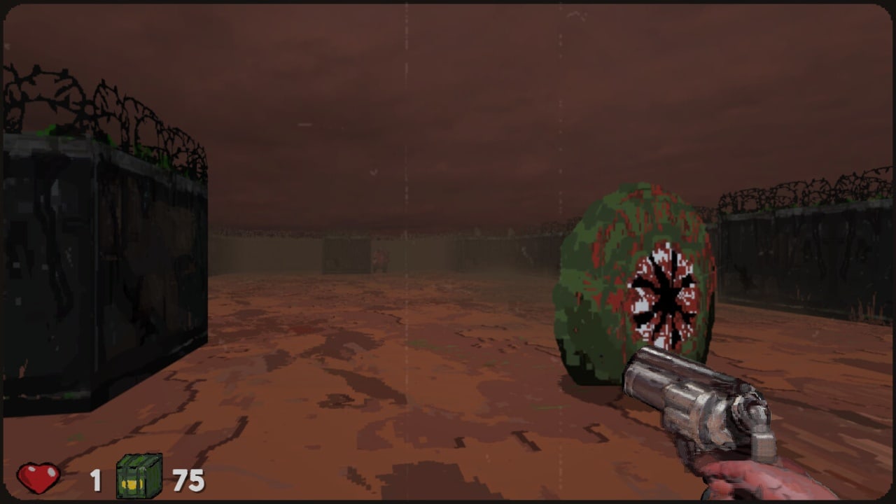 Ваша задача - очистить всю территорию от врагов, чтобы перейти на следующий этап. Предусмотрено два типа противников: брутальный меледжист с четырьмя руками и летающий глаз, который стреляет в вас. Главным же вооружением протагониста является револьвер. Пути врагов часто непредсказуемы, что делает сражения еще более захватывающими. Визуальный стиль специально сделан зернистым, что вместе с качественным звуком подчеркивает атмосферу. Вы можете играть всего десять минут, чтобы убить время и попробовать победить пару волн врагов. При этом игра отличается высокой реиграбельностью, ведь каждый забег будет уникальным благодаря процедурной генерации уровней.