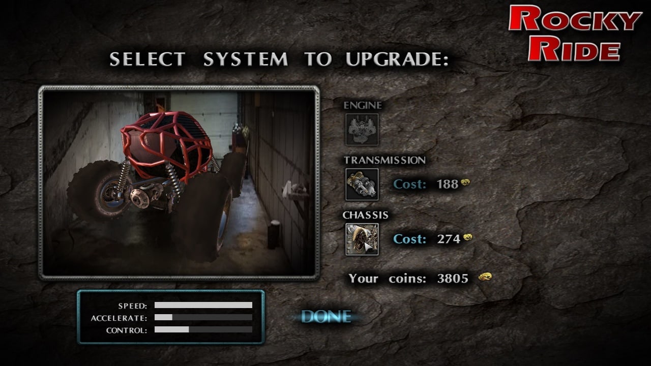 Rocky Ride - это не просто гоночная игра, это настоящий вызов твоим навыкам и смелости. Здесь ты будешь гонять на багги по трассам с самыми крутыми поворотами и круче, чем горы. Тебе предстоит не только показать свои умения в управлении багги, но и устроить бои с опасными соперниками на трассе. Собирай монеты, чтобы улучшить свой багги и выигрывать гонки. Каждый раз, когда ты оказываешься на первом месте, ты получаешь больше денег и славы, чтобы улучшить свой багги и победить еще больше соперников.