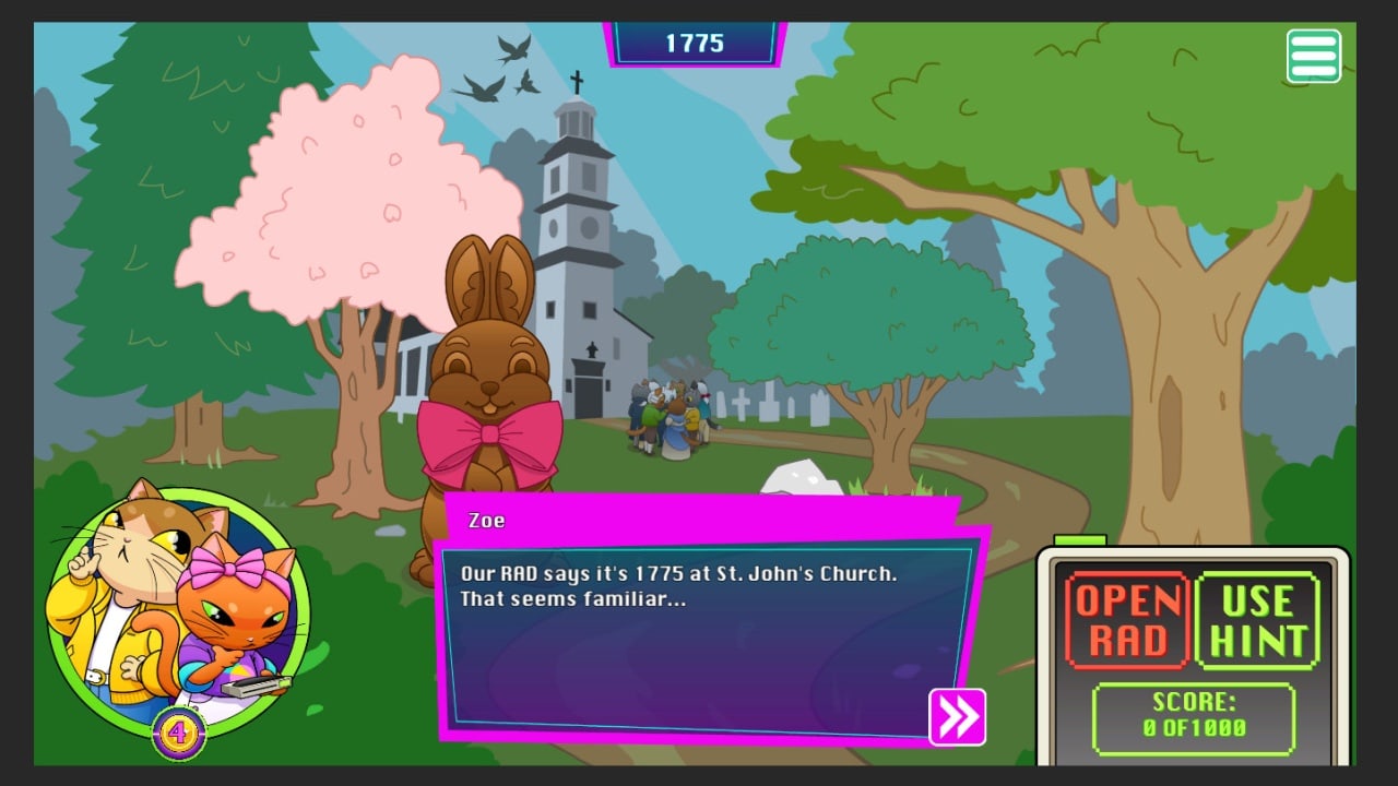 Time Tails отправит геймеров в дикое путешествие по истории! В этой захватывающей приключенческой игре с подсказками и щелчками вы присоединитесь к Ари и Зои, двум абсолютно радикальным кошкам из 80-х годов, которые перенесутся во времени во времена Американской революции. Вперёд, путешественники во времени! Но это не все веселье. Нет, сэр! У Ари и Зои есть задание: им нужна ваша помощь, чтобы исправить некоторые неприятные сбои в хронологии и спасти Революцию от верной гибели. Сможете ли вы справиться с давлением?