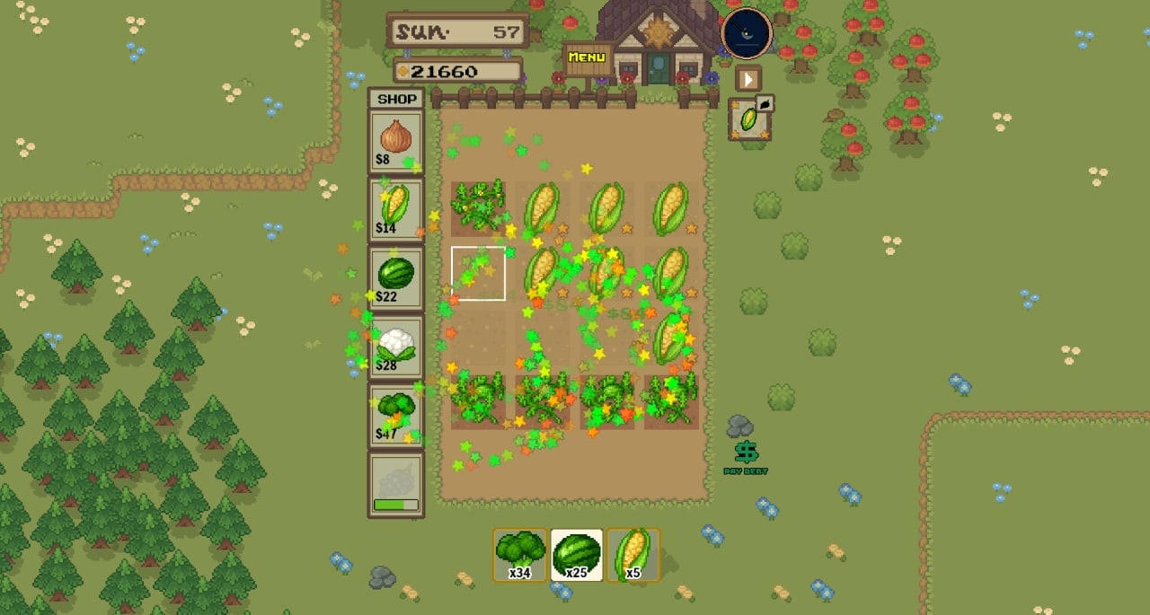 Farmhand Go! - это игра-симулятор фермерства от независимого разработчика, позволяющая испытать радость управления фермой. Она разработана как непринужденная и легкая, что делает ее доступной для игроков всех возрастов и уровней опыта. Главной целью является выращивание и продажа сельскохозяйственных культур, чтобы расплатиться с долгами фермы. Геймплей прост, но в то же время сложен, поскольку необходимо сбалансировать стоимость семян и цену продажи всего выращенного.