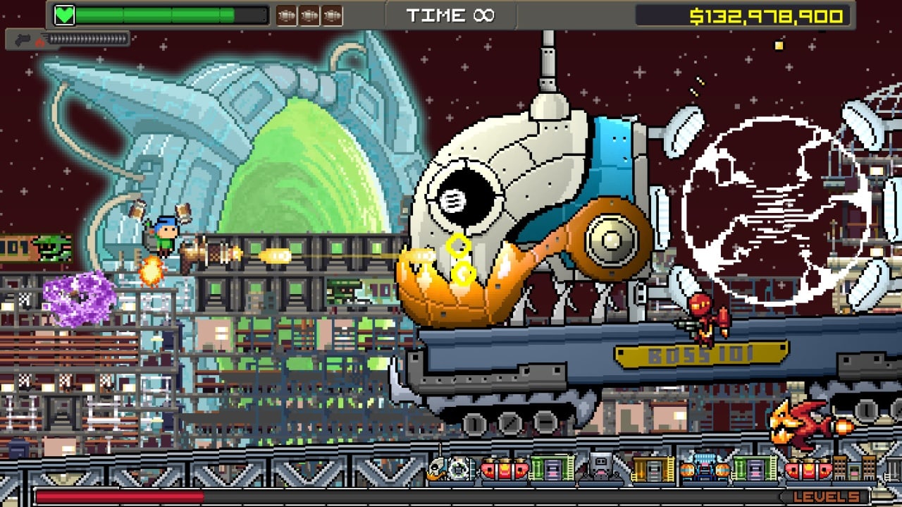 Boss 101 - это аркада с элементами приключения и экшена, в которой геймеры смогут исследовать разные миры, улучшать свою технику и базу, заводить новых друзей, адаптировать питомцев и даже запустить собственного воздушного змея. Сюжет начинается с просьбы твоего брата о захватывающем дне рождении. К сожалению, он находится в больнице, поэтому твоя задача сделать незабываемый домашний фильм. Ты отправляешься в путешествие по галактике, чтобы спасти день и привезти потрясающие кадры для брата. Возвращайся в свой командный центр для отдыха, улучшения оружия и исследований.