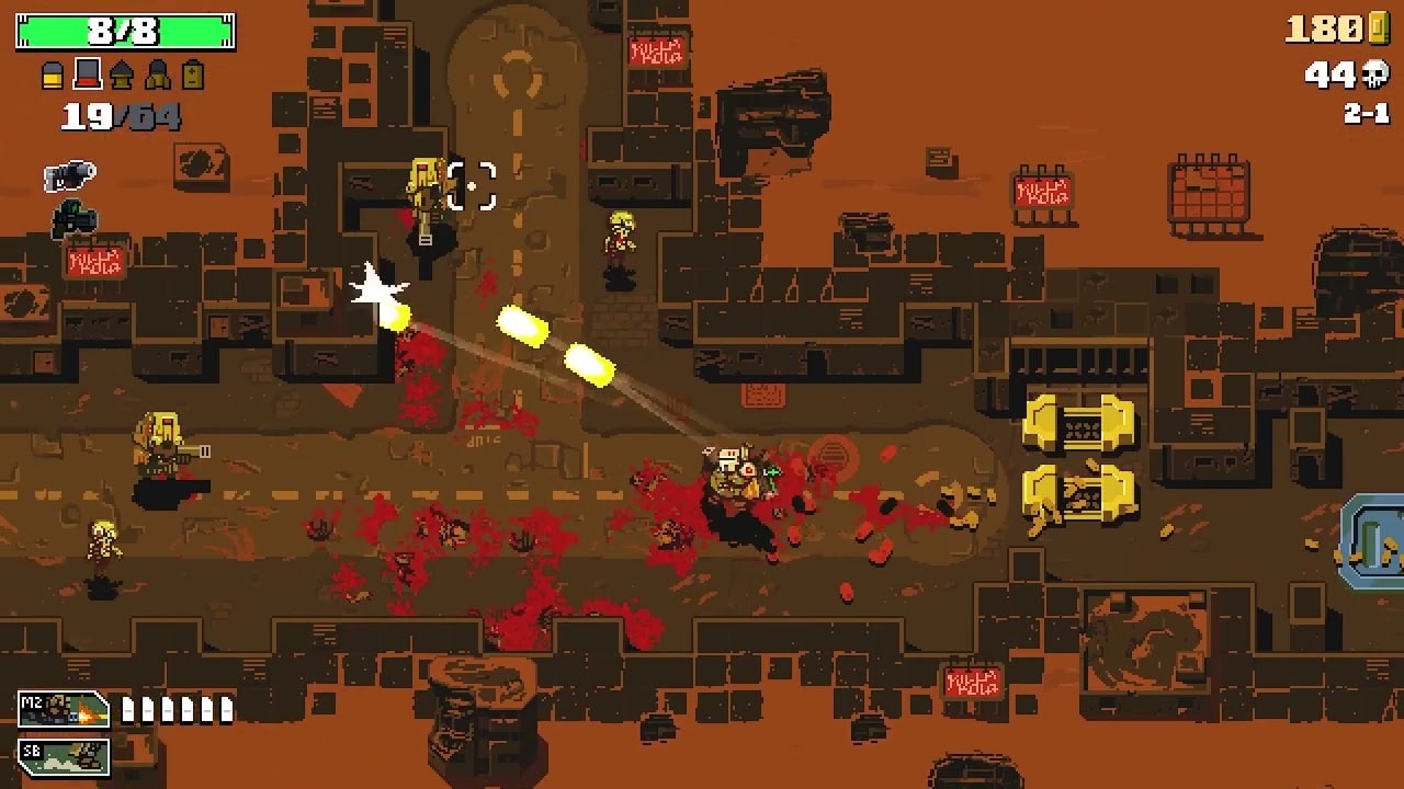 Сражаться потребуется с 30 типами врагов. Противники состоят из монстров и различных существ. Помимо стандартных мобов присутствуют могущественные боссы с большим запасом жизненных сил. С каждым последующим этапом сложность увеличивается. Например, на арене может быть главарь и обычные противники. Каждый протагонист имеет свою индивидуальные ветки прокачки. Юниты специализируются на определенных видах вооружения. Арсенал состоит из 90 видов огнестрела. Каждое оружие в корне меняет стратегию поединков. Все стволы доступны для прокачки. Можно не только улучшать пушки, но и ставить на них разнообразные модификации.