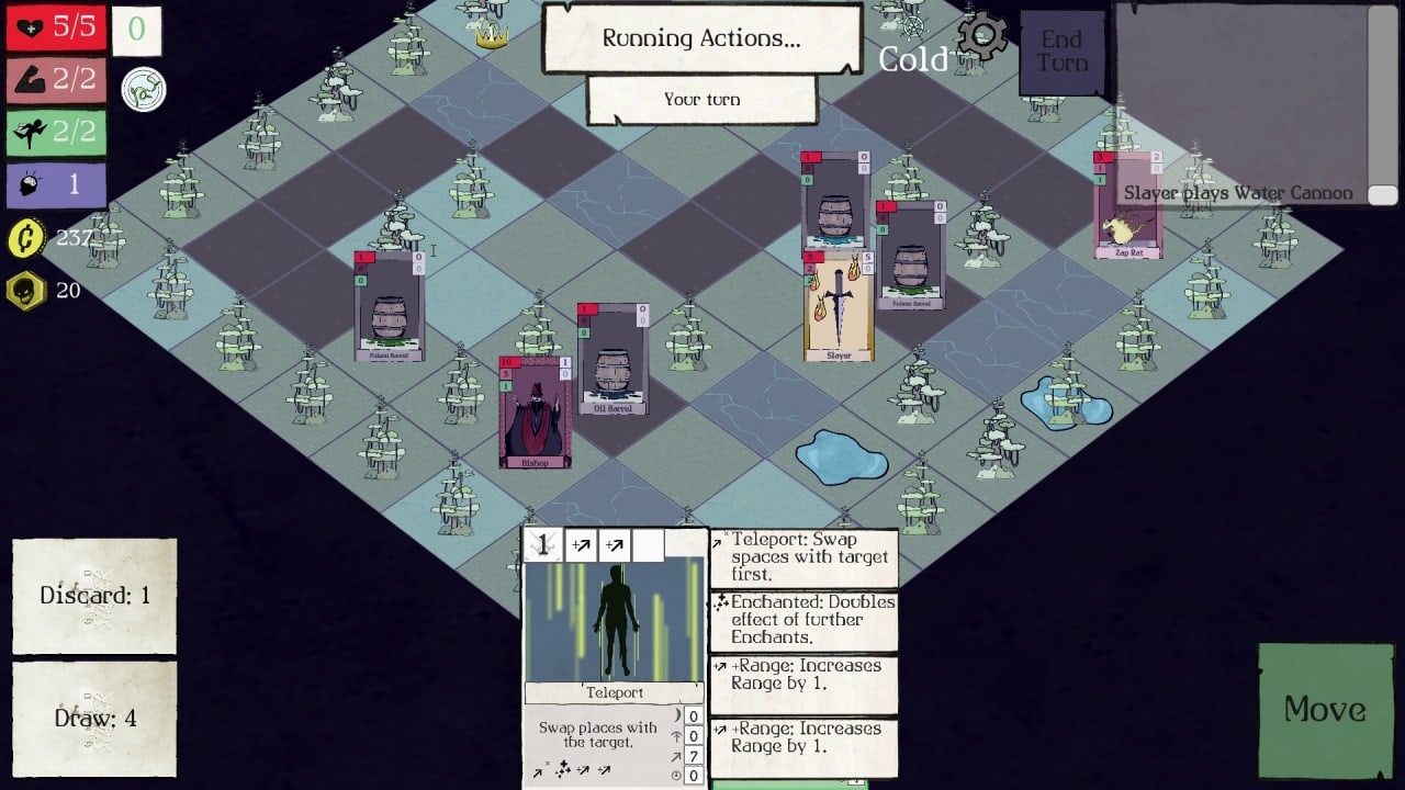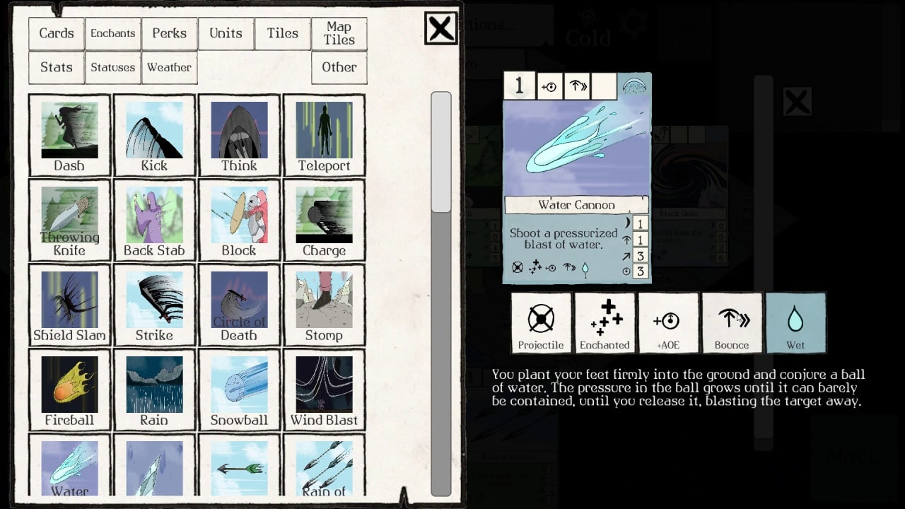 Каждый элемент окружения в игре имеет свои уникальные свойства и взаимодействия. Электричество оглушает и распространяется через воду, а вода тушит огонь. Это только некоторые примеры того, как можно использовать стихийное волшебство в своих интересах. Любой юнит получает импульс при передвижении, что дает вам возможность создавать уникальные тактические комбинации. Используйте отталкивание и импульс, чтобы достичь максимальной синергии между элементами и одержать победу. Кроме того, каждая карта в игре может быть изменена во время кампании с помощью чар. Добавьте к дождю "электризованность", чтобы он превратился в настоящее грозовое облако, или нанесите огненному шару дополнительный урон и сделайте его взрывным.