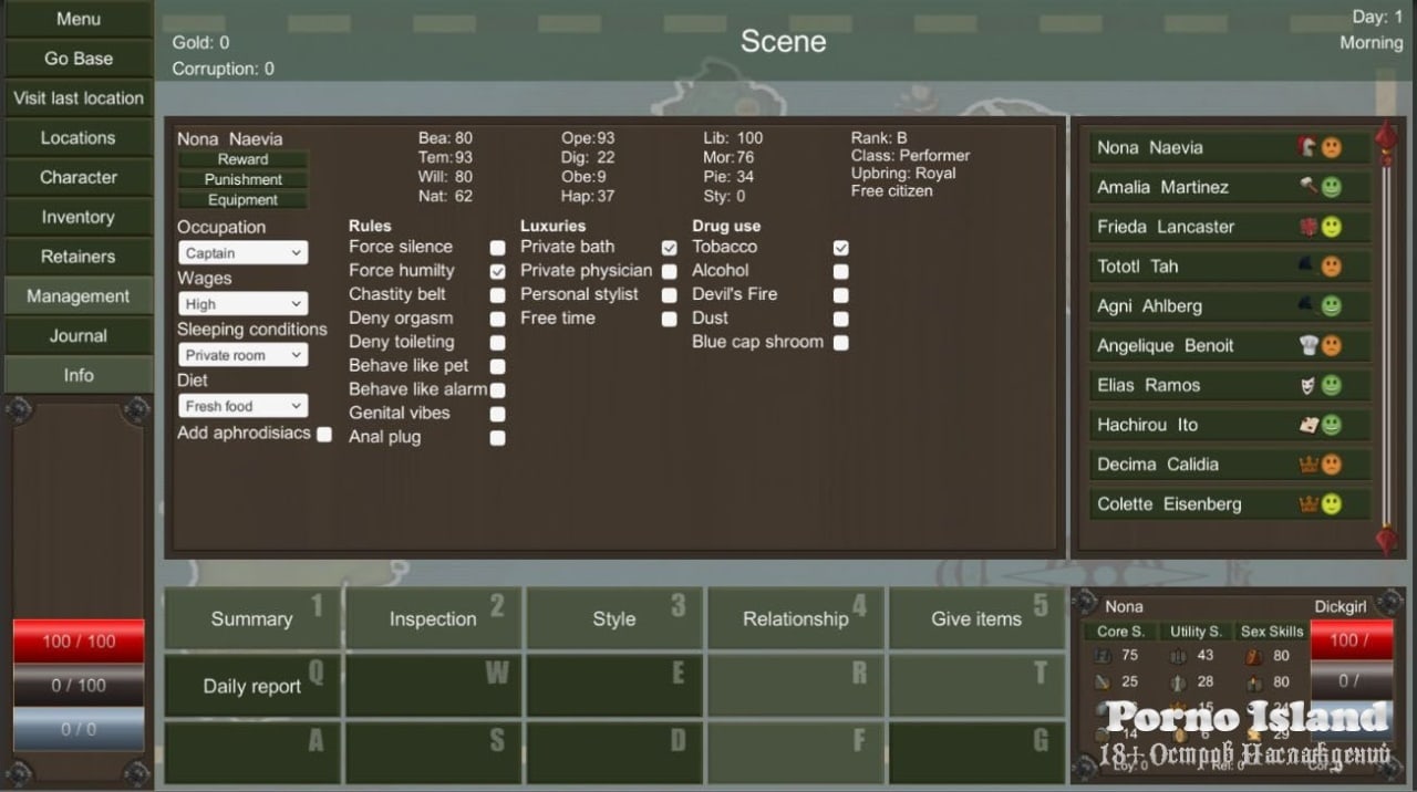 Debauchery In Caelia Kingdoms v 0.7.19 Новая версия Полная версия Последняя в альт. раздачах Дата выхода 2020 Разработчик DuoDevelopers Жанр Визуальная новелла Обновлено 26 февраля 2025, 18:32 Список изменений Действия развратного строительного проекта Debauchery In Caelia Kingdoms разворачиваются в вымышленной фэнтезийной вселенной, где на развитых светлых землях разбросила владения могущественное государство. Главный герой – молодой царевич, с детства воспитываемый отцом-королем. Папа с малых лет готовил его к ответственной миссии управления королевством, не жалел времени и средств на обучение и подготовку. Когда пришел его черед, протагонист надел корону и сел на золотой трон, чтобы продолжить дело предшественника и подарить жителям счастливую и богатую жизнь без кровопролития и воен. В Debauchery In Caelia Kingdoms у пользователя есть масса вариантов, как запечатлеть имя подопечного в истории измерения – в положительном свете мудрого реформатора с нововведениями и изменениями, или в отрицательном, где центральный персонаж предстанет перед придворными, как жестокий тиран и хитрый убийца, не считающийся с мнениями и позициями окружающих. Параллельно он занимается обустройством столицы и провинций, постройкой новых зданий, крепостей. Без конфликтов с соседями не обойтись – большинство противоречий решается дипломатическими манипуляциями за столом переговоров, а когда слова иссякли – на поле битвы. Присутствует и эротическая составляющая – монарх знакомиться с привлекательными аристократичными дамами и занимается с ними любовью в надежде получить будущего императора. Скачать торрент Скриншоты Скачать Debauchery In Caelia Kingdoms Тип релиза Лицензия (Таблетка: Не требуется) Версия v 0.7.18 Размер 185.15 МБ Интерфейс Английский Озвучка Отсутствует Установка и запуск: Примечание Более актуальная версия: v 0.7.19находится в блоке - Альтернативные раздачи. Скачать .torrent торрент файл Скачать БЕЗ торрента прямая ссылка через uTorria Альтернативные раздачи Прямые ссылки Облачные хранилища v 0.7.19 195 МБ Показать Системные требования ОС: 7 / 8 / 10 Процессор: Dual Core 2 GHz Оперативная память: 1 GB Видеокарта: 1 GB Нагота