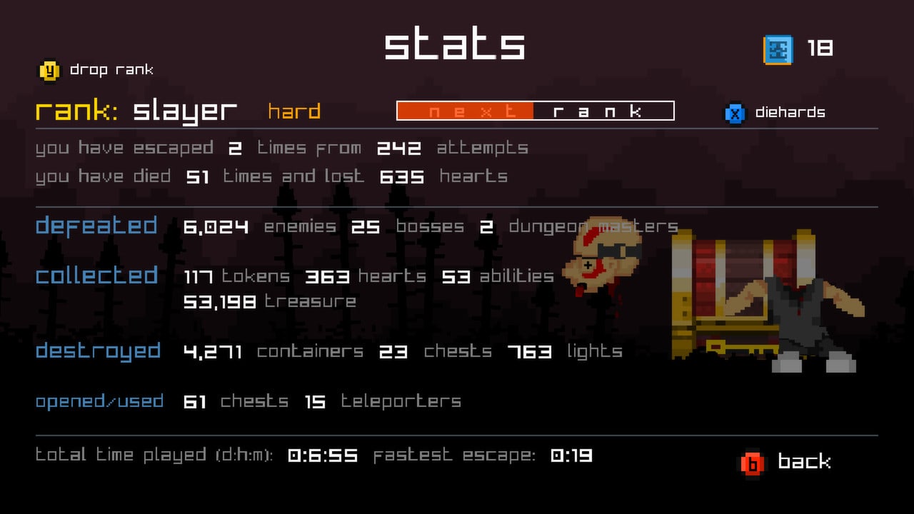 Diehard Dungeon - это увлекательный экшен от независимого разработчика, который перевернет ваше представление о жанре реал-тайм рогалик и заставит вас окунуться в волшебный мир 16-битной графики. Следуя за вашим верным спутником - сундуком для сбора сокровищ, вы должны пройти через множество случайно сгенерированных комнат и уровней подземелья.