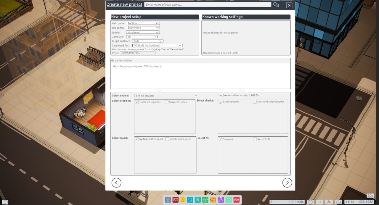 Software Company позволяет стать вдохновителем империи, создающим лучшие игры, движки и консоли в истории индустрии. Начав с нуля в своем гараже, вы пройдете путь от владельца небоскреба до руководителя всемирно известной студии видеоигр. Благодаря огромному количеству жанров и тем на выбор, вы сможете создавать игры, которые будут выделяться среди других, отличаться инновационными функциями и захватывающими сюжетными линиями. Начав со скромных текстовых игр, вы можете превратиться в AAA-блокбастеры и массовые многопользовательские онлайн-игры с передовыми технологиями и расширенными возможностями.