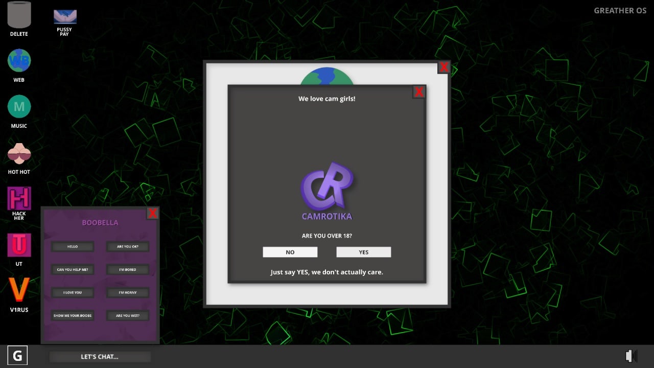 Hentai Hack-Her - это игра-симулятор рабочего стола для взрослых, которая предлагает захватывающий опыт управления собственным экраном. После установки игроки могут персонализировать свой десктоп, выбирая обои, слушая музыку, просматривая веб-страницы и даже устанавливая приложения. Однако главной особенностью является приложение Hack-Her, которое позволяет погрузиться в хакерский 2D-шутер.
