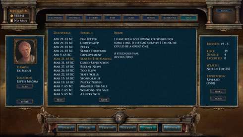 В игре есть экономическая система, предоставляющая ресурсы, которые необходимо вкладывать в развитие юнитов. Каждому из них требуется еда, вода и одежда, а главное оружие. Можно повысить свою репутацию, тем самым привлечь более сильных воинов. Каждый бой гладиатора заканчивается либо победой, либо поражением. Проигрыш – это смерть юнита, а выигрыш повышает характеристики, даёт славу и деньги.