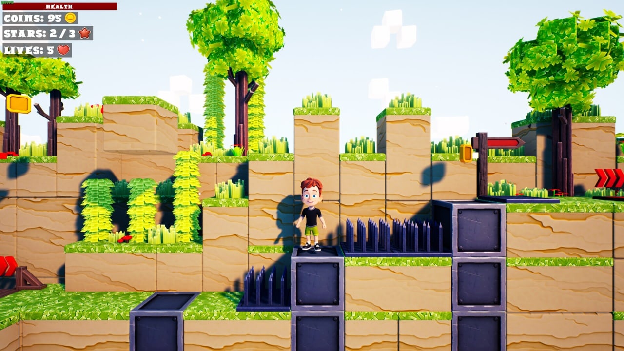 Мир Героев включает в себя впечатляющее количество 100 уровней, разделенных на 10 уникальных миров, каждый из которых отличается своей тематикой и возрастающей сложностью. Тщательно продуманные уровни отличаются большим разнообразием, что позволяет игрокам столкнуться с множеством трудностей и сюрпризов. Динамические элементы, такие как движущиеся платформы, переключатели, ключи, двери, пушки и другие увлекательные компоненты, еще больше усиливают процесс погружения. Между тем, противники, от пауков, летучих мышей и змей до грозных роботов, представляют собой захватывающее сочетание врагов, которых нужно победить. Некоторых врагов можно победить, применив искусную тактику прыжка на них, а других лучше вообще избегать.