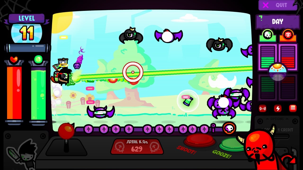 Soulvester VS Lil' Beezey - захватывающий сайдскроллер в жанре 2D action roguelite, в которой вам предстоит вступить в эпическую схватку с печально известным Лил Бизи и его ужасающей армией Horrorballs. В роли доблестного Соулвестера ваша миссия - спасти причудливый городок Уинклтаун от лап этих чудовищных захватчиков. Приготовьтесь к ярким впечатлениям, ведь здесь органично сочетаются механика шутера с боковой прокруткой и элементы рогалика. С каждой победой вы будете повышать свой уровень и приобретать разнообразные случайно генерируемые предметы, которые улучшат ваши способности и даже изменят ваш внешний вид. Но берегитесь, ведь ваши противники становятся все сильнее и разнообразнее с каждым шагом вперед. В своем последнем походе вы также встретитесь лицом к лицу с коварной антагонисткой, которая не остановится ни перед чем, чтобы помешать вашему прогрессу, нанося разрушительные удары, чтобы держать вас в напряжении.