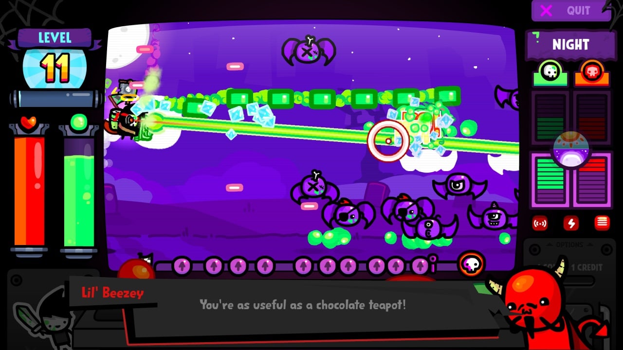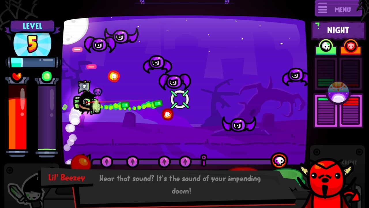 Soulvester VS Lil' Beezey выполнена в восхитительной ретро-эстетике, с яркой и анимированной 2D-графикой, вызывающей чувство ностальгии. Ваши захватывающие эскапады сопровождает увлекательный саундтрек, который задает идеальный тон каждой встрече. Увлекательная озвучка оживляет персонажей игры, придавая им индивидуальность и юмор. Кроме того, вы можете следить за своей статистикой, открывать различные достижения и настраивать скины для ридикюля и хоррорбола.