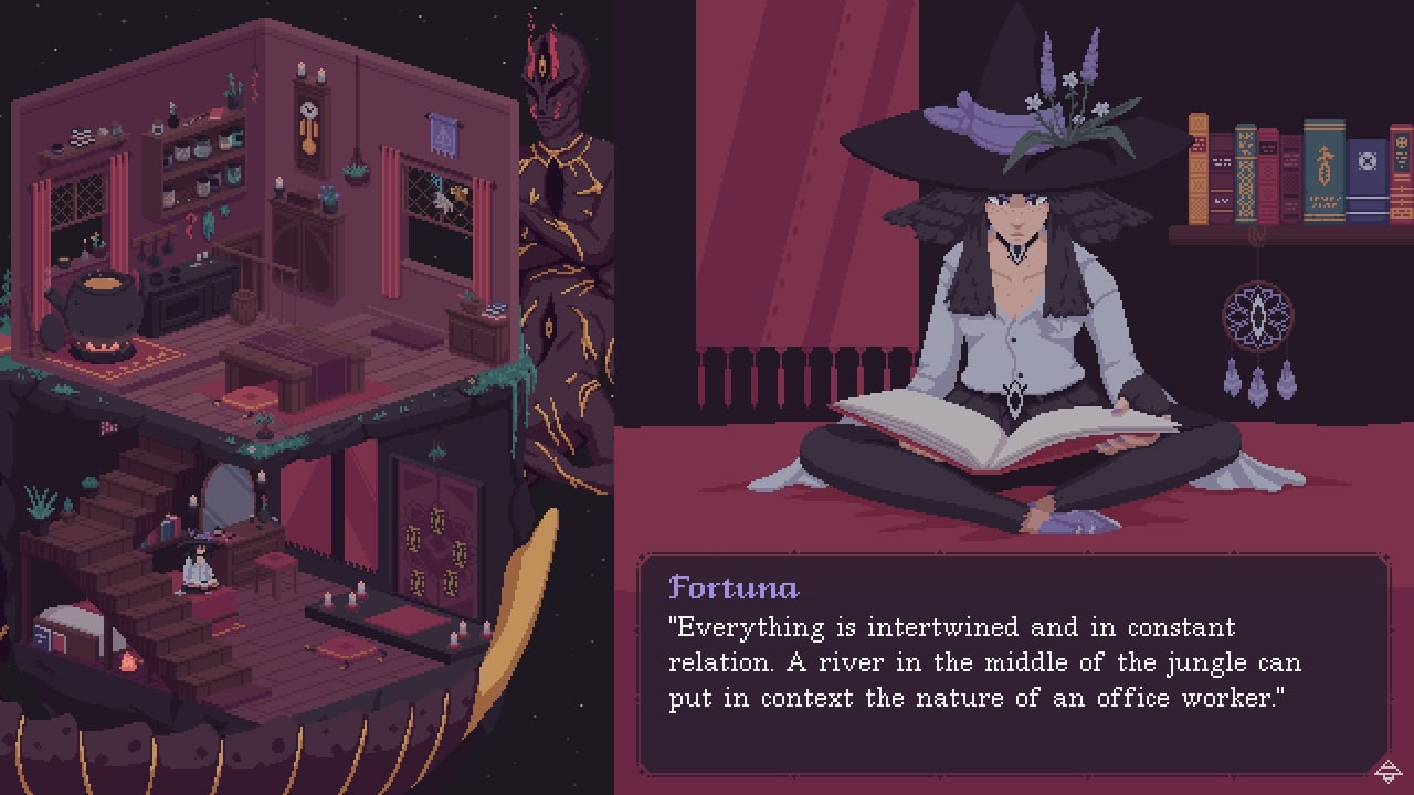 The Cosmic Wheel Sisterhood - это приключенческая игра, которая погружает в увлекательный мир, наполненный магией, тайнами и напряжением. Проект вращается вокруг концепции гадальных карт, которые служат воротами для изучения жизни и судьбы разнообразной группы ведьм. Отправляясь в это увлекательное путешествие, пользователь возьмет на себя роль Фортуны - ведьмы, которая была изгнана на два столетия из-за договора, заключенного ею с запретным существом. Теперь протагонистка получила возможность воссоединиться со своим Ковеном и столкнуться с последствиями своих действий. Ее месть зрела слишком долго и теперь обрушится на негодяев с полной силой.