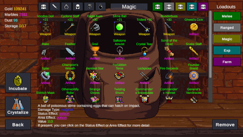 Помимо основного оружия, есть второстепенное и специфическое для конкретной локации вооружение, которое можно разблокировать и использовать на любой карте. Кроме того, здесь реализована система слияния доспехов, которая позволяет подбирать комплекты экипировки с соответствующими артефактами. Эти вещи дают пассивные бонусы, улучшающие способности. Достигнув максимального уровня предмета, можно объединить его с доспехами, освободив место для другого ценного предмета.