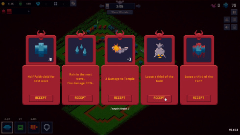 Gods of Defense - это увлекательная игра, в которой органично сочетаются захватывающие элементы жанров roguelike и deck building, в результате чего создается поистине уникальный и динамичный игровой опыт. Пользователь берет на себя роль могущественного божества, которому поручено защитить священный храм от неумолимых полчищ врагов, врывающихся через ворота. Чтобы эффективно отразить нападение этих захватчиков, необходимо стратегически выстроить множество строений. Однако оборонительные усилия осложняются тем, что враги наводят порчу и проклятия.