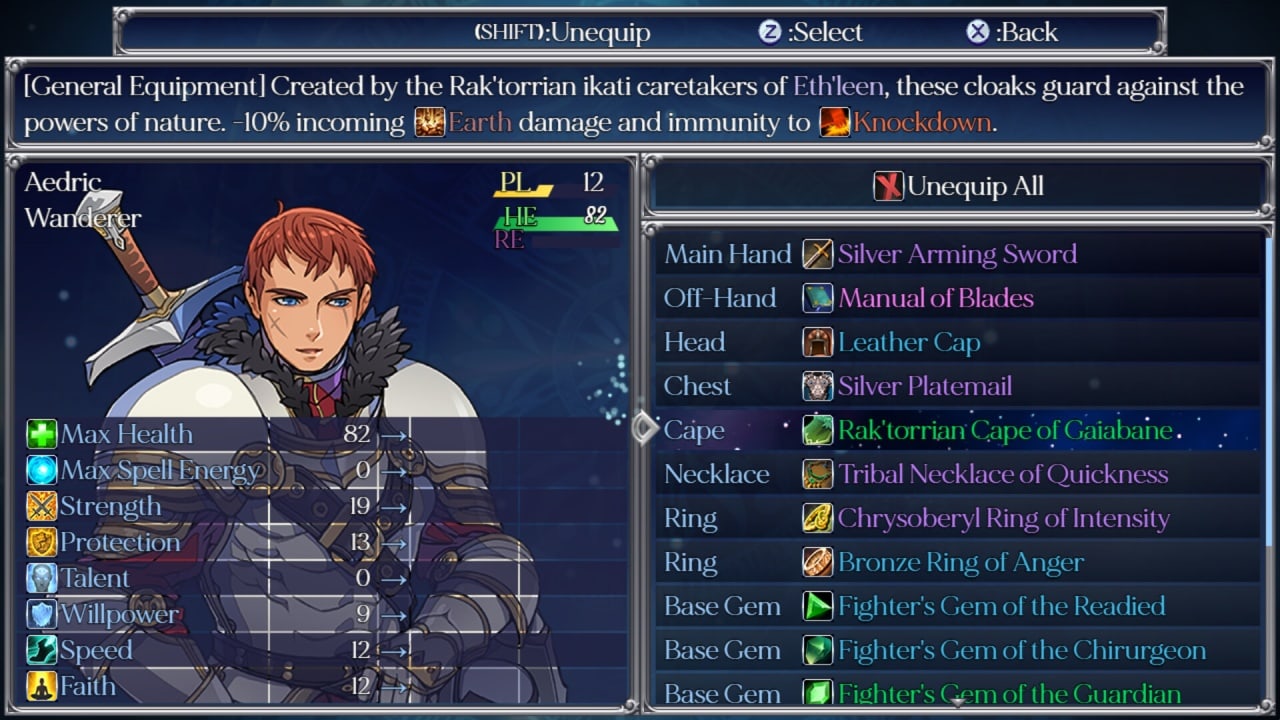 Разнообразный выбор 54 видов оружия, 150 видов брони и аксессуаров, а также 92 навыков и заклинаний позволяет игрокам стратегически правильно экипировать свою партию. Улучшение способностей героев с помощью драгоценных камней придает процессу дополнительную глубину. 60 разнообразных сражений требуют от юзеров применения различных тактик, использования эффектов состояния, времени действия заклинаний, свободных действий, временных способностей и многого другого. В трудные моменты в бой вступают приглашенные персонажи, чтобы сражаться вместе с вами.