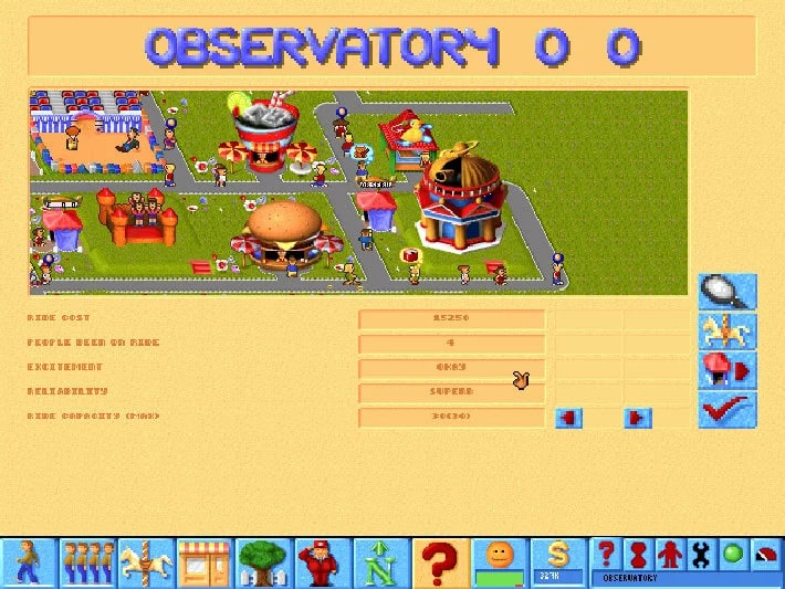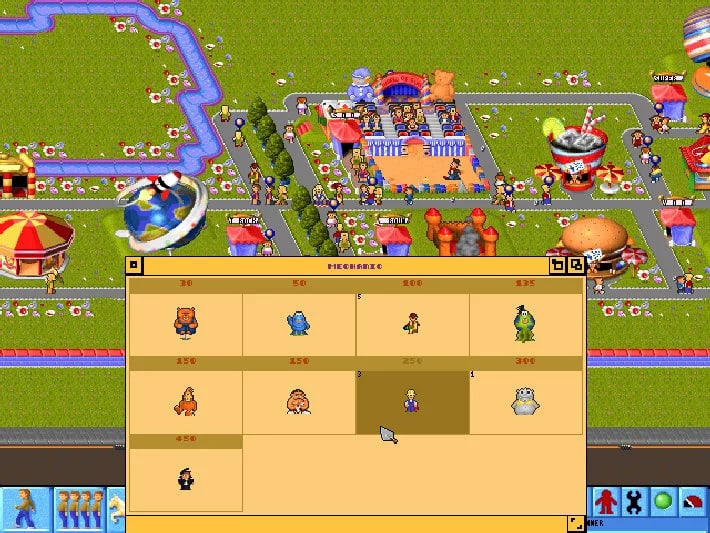 Theme Park, представленная в середине 90-х, является знаковым симулятором, где участникам игры отводится роль создателей и менеджеров собственного парка развлечений. С небольшим начальным капиталом в несколько сотен тысяч долларов и свободным участком земли под парк, участники стремятся создать коммерчески успешное предприятие, наполненное увлекательными аттракционами и прибыльными точками продаж. В начале доступны простые аттракционы, например, надувной замок или домик на дереве. Однако по мере развития появляется возможность открывать более сложные и впечатляющие аттракционы, вроде американских горок или колеса обозрения. Всего на выбор предлагается более 30 различных типов аттракционов.