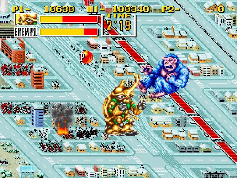 King of the Monsters, захватывающее зрелище чудовищных боев, появилось в 1991 году и захватило воображение любителей игровых автоматов во всем мире. Игра представляет собой уникальное слияние жанров файтинга и реслинга, населенное разнообразным набором колоссальных существ, напоминающих персонажей классических фильмов кайдзю и токусацу.