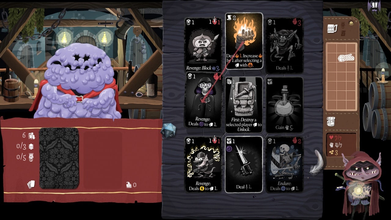 Ключевым аспектом этой игры является инновационная система боя на основе пути, которая добавляет слой стратегической глубины в ваши карточные сражения. Путешествуя по миру, вы столкнетесь с хитрыми монстрами и коварными боссами таверн, и каждая встреча будет проверять вашу тактическую смекалку. Геймплей сосредоточен на том, чтобы нарисовать путь через свои карты, чтобы развязать мощные атаки и произнести магические заклинания. Собирая карты и находя сокровища, вы можете использовать мощные предметы и совершенствовать свою стратегию. У каждого персонажа, с которым вы столкнетесь, есть свои собственные карты и эффекты, расширяющие границы вашей смекалки, храбрости и находчивости.