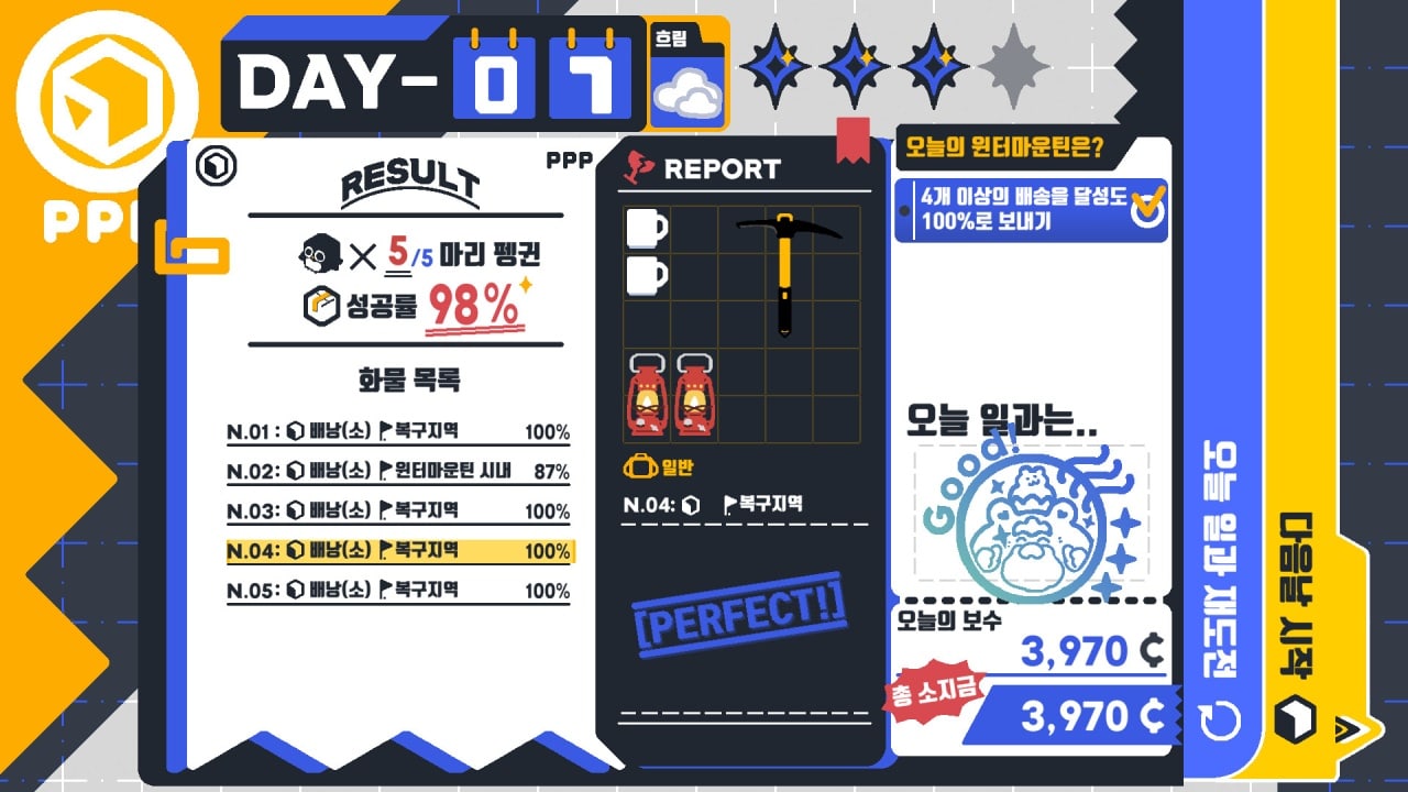 Polar Penguin Post v Demo (Steam) Новая версия Ранний Доступ Последняя версия Дата выхода 30 ноя. 2022 Разработчик Little Lemon Bulb Жанр Инди, Симуляторы Положительные на основе 25 обзоров в Steam 96% Обновлено 17 февраля 2025, 19:58 Список изменений Polar Penguin Post — головоломка-симулятор, предлагающая взять на себя управление компанией по доставке среди ледяных ландшафтов Зимней горы. Миссия проста и состоит в том, чтобы обеспечить безопасную транспортировку различных предметов, используя пингвинов в качестве верных курьеров. Старательно выполняя заказы и протягивая руку помощи местным жителям, вы заслужите их доверие и поспособствуете принятию пингвинов как ценных членов сообщества. В этой холодной обстановке вы вступаете в шкуру Мина, который вместе со своим братом Часом основывает Пост полярных пингвинов, чтобы гарантировать, что их друг будет признан частью семьи Зимних гор. Как менеджер компании, нужно эффективно организовывать поставки, а каждая имеет уникальный размер и форму, в сумки пингвинов. Некоторые предметы могут быть довольно громоздкими, поэтому стратегическая упаковка необходима, чтобы все дошло до места назначения в целости и сохранности. Неправильное обращение с товарами может иметь ужасные последствия: стеклянные предметы рядом с кирпичами могут разбиться, буквы рядом с серпами могут повредиться, а близость к углю или нефти приведет к тому, что предметы покроются сажей и жиром. Однако умелое размещение одеяла на мешке с цементом не причинит никакого вреда. Крайне важно учитывать характеристики каждого товара, чтобы гарантировать успешную доставку и удовлетворить как клиентов, так и пингвинов. Скачать торрент Скриншоты Показать больше Видео из игры Скачать БЕЗ торрента прямая ссылка через uTorria Альтернативные раздачи Прямые ссылки Облачные хранилища v Demo (Steam) Показать Системные требования ОС: Windows 7, 8, 10 Процессор: Intel Core i3 Оперативная память: 2 ГБ Видеокарта: 1 ГБ Тайм-менеджмент, Головоломка-платформер, Головоломка, Симулятор жизни, Протагонистка, Игры в 2D, Милая, Казуальная, Постапокалипсис, Линейная, Мультипликация, Менеджмент, Для всей семьи, Фэнтези, Набор очков, Юмор, Сверхъестественное, Менеджмент инвентаря, Управление ресурсами