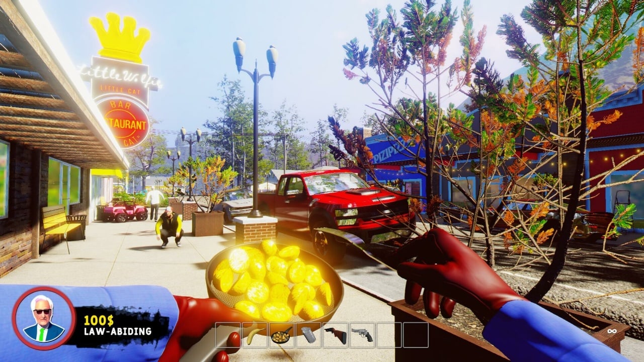 Однако не все любят жареный картофель, и эти кулинарные разногласия могут перерасти в конфликт. Игроки должны быть готовы защищать Билла, используя все, что угодно, от обычного банана до более серьезного вооружения, которое можно приобрести в местном магазине. Цель игры проста: угостить жареной картошкой как можно больше горожан. Но если вы хотите сменить обстановку, есть режим песочницы, в котором вы можете исследовать город на досуге, разыгрывая ничего не подозревающих жителей. Единственное предостережение - слишком сильное озорство может привлечь внимание местных правоохранительных органов. Неважно, подавать ли картошку или сеять хаос, задача состоит в том, чтобы сохранить жизнь Биллу и избежать неприятностей, наслаждаясь жизнью маленького городка и его причудливыми жителями. Это WAT?, игра, которая подает щедрую порцию смеха, экшена и жареной картошки.