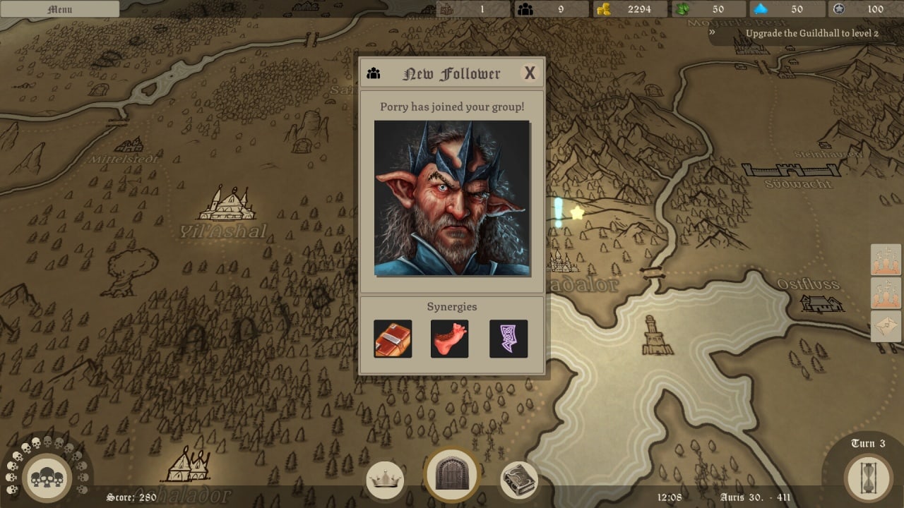 - Строительство базы, позволяющее вам настраивать зал вашей гильдии, набирать новых членов, торговать с другими городами и изготавливать оружие и зелья.