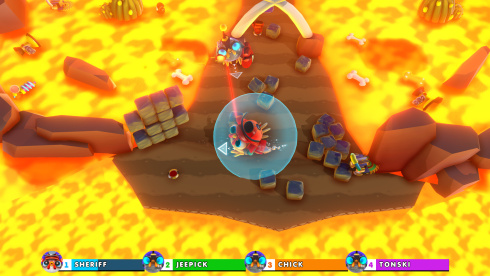 Chickenoidz Super Party - многопользовательский шутер с видом сверху вниз, рассчитанный на четверых. Играть можно как локально, так и по сети через Remote Play. В игре представлено множество видов оружия, специального снаряжения и мутаций, с помощью которых можно уничтожать противников и все вокруг. Она вдохновлена классическими аркадными играми 90-х годов, но с изюминкой: вы играете за цыплят. Вы можете выбрать более пятнадцати различных нарядов для своей курицы: панк, самурай, ведьма и т.д. Вы также можете превратиться в гигантского цыпленка, съев секретную формулу ДНК, что даст вам дополнительную силу и особую атаку.