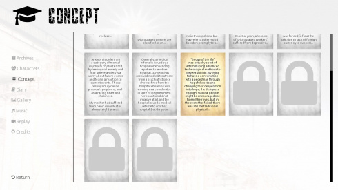 Discouraged Workers TEEN RUS v Demo (Steam) Новая версия Полная версия Последняя Дата выхода 21 мар. 2016 Разработчик YGGDRASIL STUDIO Жанр Приключения, Инди, Визуальная новелла, Аниме Смешанные на основе 66 обзоров в Steam 64% Обновлено 17 февраля 2025, 20:09 Список изменений Discouraged Workers TEEN - кинетический роман, исследующий темную сторону молодости и серьезные жизненные события, происходящие вокруг главной героини Га-Ён. Тайтл является пятым эпизодом серии Project DW - сатирической истории, основанной на сюжете популярных корейских мыльных опер. Проект рассказывает о судьбе Га-Ён и ее мрачных буднях координатора больницы, уволенной за роман с женатым врачом. Больше года она пыталась найти другую работу, но душевное беспокойство заставило ее сдаться, и она стала затворницей. Через год, весной 2013 г., к ней приезжают младшая сестра Хё На и ее первая любовь Юн У. Тайтл представляет собой линейный сюжет, не требующий от геймера особого взаимодействия. Юзер может смотреть, читать, слушать и чувствовать эмоции персонажей и ситуации, с которыми они сталкиваются. Здесь также имеется архивная система, содержащая 90 записей ("Персонажи и концепция", "Дневник", "Галерея", "Музыка", "Воспроизведение"), которые помогут пользователю лучше понять всю историю. Discouraged Workers TEEN - игра, цель которой - доставить юзеру реалистичные и эмоциональные впечатления. Для создания яркой и захватывающей атмосферы тут используются нарисованные от руки спрайты и CG-изображения, а также фоны, созданные на основе отретушированных реальных фотографий. Мрачный и напряженный сюжет затрагивает такие темы, как депрессия, самоубийство, насилие и социальные проблемы. Скачать торрент Скриншоты Показать больше Видео из игры Скачать БЕЗ торрента прямая ссылка через uTorria Альтернативные раздачи Прямые ссылки Облачные хранилища v Demo (Steam) Показать Системные требования ОС: Windows XP, 7, 8, 10 Процессор: Pentium 4 1.66 GHz Оперативная память: 512 МБ Видеокарта: DirectX 9/OpenGL 4.1 Место на диске: 550 МБ Психологический хоррор, От первого лица, Мрачная, Глубокий сюжет, Историческая, По мотивам книги, Отличный саундтрек, Реализм, Атмосферная, Антиутопия, Психологическая, Культовая классика, Протагонистка, Игры с геймпадом