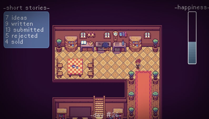 Bad Writer Дата выхода 30 сен. 2022 Разработчик Riddle Fox Games Жанр RPG, Симуляторы, Инди Торрент ожидается Добавьте в избранное, чтобы следить Bad Writer - игра, имитирующая жизнь автора коротких рассказов, который пытается найти идеи, написать историю и опубликоваться. Тайтл рассказывает об Эмили, молодой женщине, мечтающей стать профессиональным писателем. Она проводит дни в поисках вдохновения и пишет рассказы, которые отправляет в издательства. При этом ей приходится сталкиваться с отказами, депрессией и рассеянностью. Игроку предстоит помочь Эмили сбалансировать свое время, настроение и творческий потенциал. Адвенчура призвана рассказать о радостях и проблемах современного писателя. В ее создании принимали участие несколько писателей, в том числе один из ведущих разработчиков Пол Джессап, который сам является профессиональным автором коротких эссе. Проект стремится быть реалистичной, не слишком легкой и не слишком трудной. Bad Writer - это адвенчура для всех, кто любит писать или читать. Она предлагает уникальный взгляд на жизнь писателя и процесс создания историй. В проекте также представлены различные истории, написанные Эмили, которые геймер может читать и наслаждаться. Тайтл является данью уважения искусству и ремеслу написания текстов в прозе. Здесь выйдет оказывать разнообразное влияние на развитие сюжета в одиночной кампании. Скачать торрент Скриншоты Видео из игры Скачать БЕЗ торрента прямая ссылка через uTorria Системные требования ОС: Windows 7, 8, 10 Процессор: Dual Core 2.0 GHz Оперативная память: 2 ГБ Видеокарта: 1 ГБ Место на диске: 12 МБ Тайм-менеджмент, Упрощённый рогалик, Менеджмент, Симулятор жизни, Протагонистка, Игры в 2D, Вид сверху, Смешная, Казуальная, Пиксельная графика, Для всей семьи, Юмор, Олдскул, Ретро, Игры с геймпадом