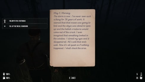 Reclusive RUS Дата выхода 27 мар. 2023 Разработчик VD Games Жанр Выживание, Приключения, Инди Смешанные на основе 24 обзоров в Steam 67% Торрент ожидается Добавьте в избранное, чтобы следить Reclusive перенесет вас на заброшенный остров в Северном Ледовитом океане, где вы столкнетесь с необъяснимыми явлениями и существами. Вы играете за путешественника, который хочет провести там последние дни своей жизни в сопровождении своего верного пса Джека. Вам предстоит собирать ресурсы, решать головоломки и ремонтировать старый маяк, чтобы помочь проплывающему мимо кораблю. Тайтл отличается уникальным геймплеем, сочетающим в себе элементы исследования, выживания и ужасов. Вам придется добывать припасы, изготавливать предметы и управлять своим инвентарем. Также придется бороться с темнотой, которая надвигается со всех сторон, и избегать встреч с монстрами, которые обитают на острове. Проект имеет разветвленную сюжетную линию, которая зависит от вашего выбора и действий. Вы можете повлиять на исход приключения, взаимодействуя с различными персонажами и предметами. Адвенчура также имеет несколько концовок, которые отражают ваши решения и поведение. Вы можете переиграть игру, чтобы открыть для себя различные пути и секреты. Reclusive бросит вызов вашим навыкам и испытает ваши нервы. Это тайтл, что погрузит вас в таинственную и враждебную среду, где все не так, как кажется. Это игра, которая заставит вас усомниться в здравом уме и реальности. Скачать торрент Скриншоты Показать больше Видео из игры Скачать БЕЗ торрента прямая ссылка через uTorria Системные требования ОС: Windows 10 (64-bit) Процессор: Intel i5-2500k / AMD Ryzen 3 1200 Оперативная память: 8 ГБ Видеокарта: GeForce GTX 1050 / AMD Radeon RX 560 Место на диске: 7 ГБ Хорроры, Поиск предметов, Демоны, Головоломка, Симулятор ходьбы, Сверхъестественное, Психологический хоррор, Исследования, Глубокий сюжет, Несколько концовок, Решения с последствиями, Реализм, Психоделия, Атмосферная, Психологическая, Мрачная, Хоррор на выживание