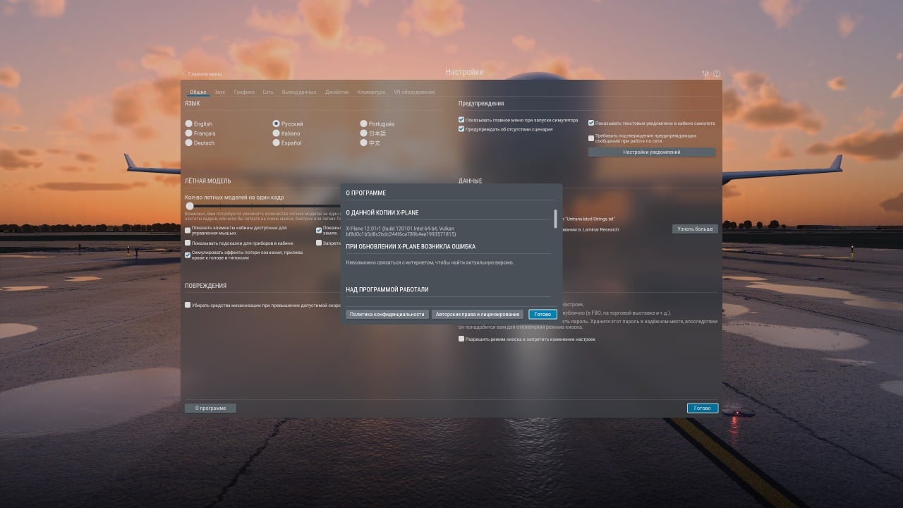 X-Plane 12 Moscow Edition RUS v 12.01r1 + AIRAC 2213 Новая версия Полная версия Последняя Дата выхода 2023 Разработчик Laminar Research Жанр Симуляторы Обновлено 28 апреля 2025, 09:08 Список изменений X-Plane 12 Moscow Edition - авиасимулятор, позволяющий испытать реалистичные полеты на различных самолетах и в различных погодных условиях. Тут реализованы такие новые возможности, как времена года, движущиеся полосы, локализованные голоса УВД и объемные облака. Также сюда включена специальная версия, в которой добавлены собственные декорации и достопримечательности российской столицы. Адвенчура построена на движке последней версии авиасимулятора. В движке используются первопринципная физика, FMOD-звук и фотометрическое освещение, что позволяет создать максимально захватывающий и аутентичный симулятор полета. Юзеры будут управлять всеми элементами, от приборов в кабине до шасси, и ощущать все силы в реальном времени. X-Plane 12 Moscow Edition предлагает широкий выбор самолетов, таких как Boeing 737, Cessna 172, MD-82 и др. Каждый обладает своими характеристиками, показателями и системами, которые требуют разных навыков и техники пилотирования. Геймеры также будут настраивать свои самолеты, используя варианты окраски, например, вымышленную MD-82 компании PAN AM. Кроме того, в игре предусмотрены разнообразные сценарии и испытания, позволяющие пользователям проверить свои летные навыки. Они могут совершать полеты в разных регионах мира с учетом погодных условий, времени суток и сезонов. Также можно попробовать приземлиться в известных аэропортах, таких как Burj Al Arab в Дубае или Красная площадь в Москве. Проект поддерживает многопользовательский режим, в котором игроки будут летать вместе с другими пилотами или против них в формате онлайн. Скачать торрент Скриншоты Видео из игры Скачать X-Plane 12 Moscow Edition Тип релиза Пиратка (Таблетка: Присутствует) Версия v 12.01r1 + AIRAC 2213 (Полная) Последняя Размер 13.77 ГБ Интерфейс Русский Озвучка Английская Установка: Примечание Русификатор к игре (текст и звук) можно найти выше под спойлером. Скачать .torrent торрент файл Скачать БЕЗ торрента прямая ссылка через uTorria Системные требования ОС: Windows 10 / 11 (64-bit) Процессор: Intel Core i3 Оперативная память: 8 ГБ Видеокарта: DirectX 12 Место на диске: 23 ГБ Физика, Реализм, Полёты