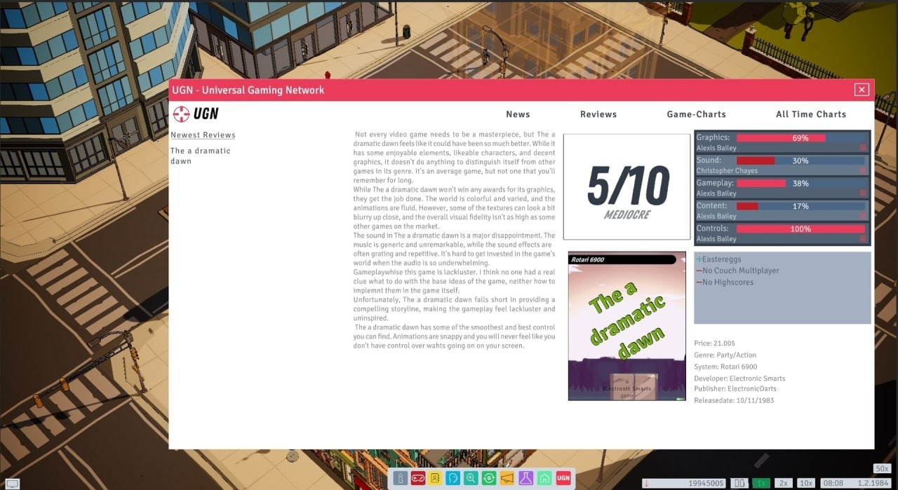 Software Company v 0.8.6.01 Новая версия Ранний Доступ Последняя версия Дата выхода 13 апр. 2023 Разработчик InkDevStudios Жанр Стратегии, Симуляторы, Инди В основном отрицательные на основе 16 обзоров в Steam 38% Обновлено 26 января 2025, 20:24 Список изменений Software Company позволяет построить собственную видеоигровую студию, начиная с первых дней существования видеоигр и заканчивая будущим этой индустрии. Выйдет разрабатывать игры своей мечты, заботиться о своих сотрудниках и управлять бизнесом. Тут реализована реалистичная симуляция процесса разработки игр, где вам предстоит исследовать новые технологии, проектировать механики, создавать художественные и звуковые активы, тестировать и полировать свои проекты. Вы также можете нанимать и обучать сотрудников, поручать им разные проекты, следить за их работой и удовлетворенностью. Приходится балансировать между бюджетом, репутацией и спросом на рынке, а также общаться с конкурентами, издателями и критиками. Кроме того, проект предлагает динамичный и захватывающий мир, в котором можно взаимодействовать с различными персонажами - сотрудниками, клиентами, журналистами и другими разработчиками. Вы также будете читать случайно генерируемые новости и обзорные статьи, отражающие состояние индустрии и восприятие ваших адвенчур. Мир развивается с течением времени, в нем появляются новые тенденции, события и проблемы по мере того, как вы проходите через различные эпохи истории. Software Company - это для тех, кто любит игры и хочет почувствовать, что такое их создание. Тут уникальным и увлекательным образом сочетаются стратегия, менеджмент, симулятор и сюжет. Скачать торрент Скриншоты Показать больше Видео из игры Скачать Software Company Ранний доступ Тип релиза Пиратка (Таблетка: Вшита) Версия v 0.8.6.01 (Полная) Последняя Размер 1.84 ГБ Интерфейс Английский Озвучка Английская Установка: Скачать .torrent торрент файл Скачать БЕЗ торрента прямая ссылка через uTorria Системные требования ОС: Windows 7, 8, 10 (64 бита) Процессор: Intel i5 2000MhZ Оперативная память: 4 ГБ Видеокарта: DX10, DX11, DX12 Место на диске: 700 МБ Экономика, Менеджмент, Изометрия, Программирование, Казуальная, Реиграбельность, Мультипликация, Вид сверху, Для всей семьи