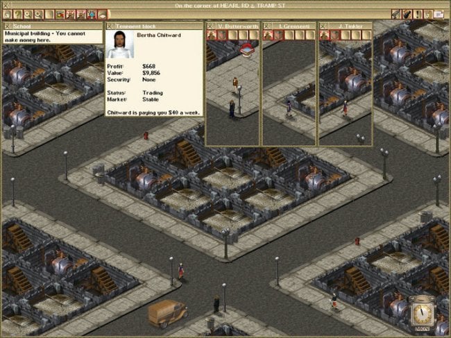 Основная часть игры Гангстеры состоит в организационных моментах и планировани. Предстоит выбрать список жертв, у кого отжать деньги, кого убить, где открыть новое заведение, будь-то бордель или бар. Узнать, кому можно дать взятку и подкупить. Никто не запрещает убивать своих людей, включая бухгалтера, если нет доверия к юниту.