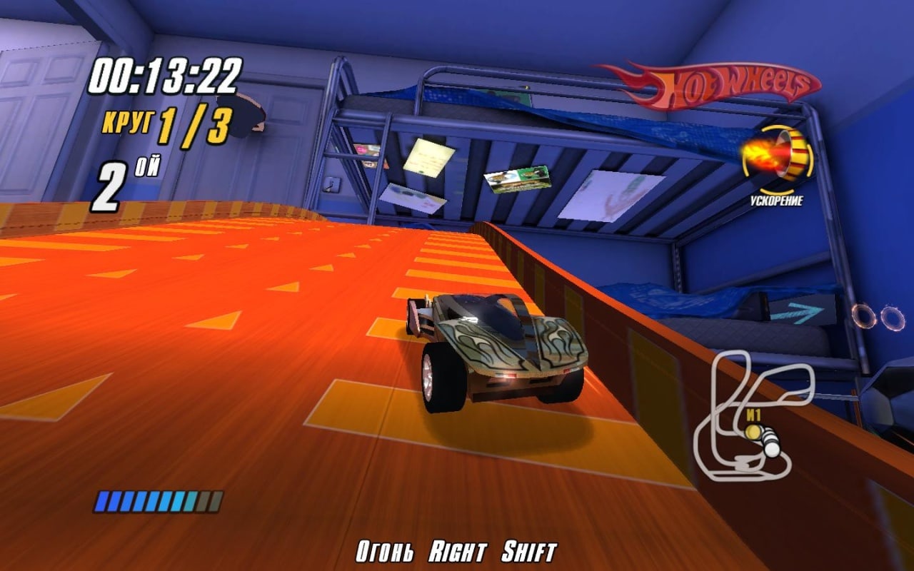 Полы в спальне Hot Wheels: Beat That! превращаются в извилистые скоростные трассы с поворотами вокруг комодов и опасными прыжками через корзины для белья. Поле для мини-гольфа перевоплощается в ухабистые американские горки, где опасность подстерегает каждую ветряную мельницу и водяную преграду. Пыльный чердак превращается в полосу препятствий из забытых игрушек и развалившейся мебели, а сверкающие дорожки боулинга предлагают скоростные захваты среди разбросанных кеглей и поджидающих бамперов.