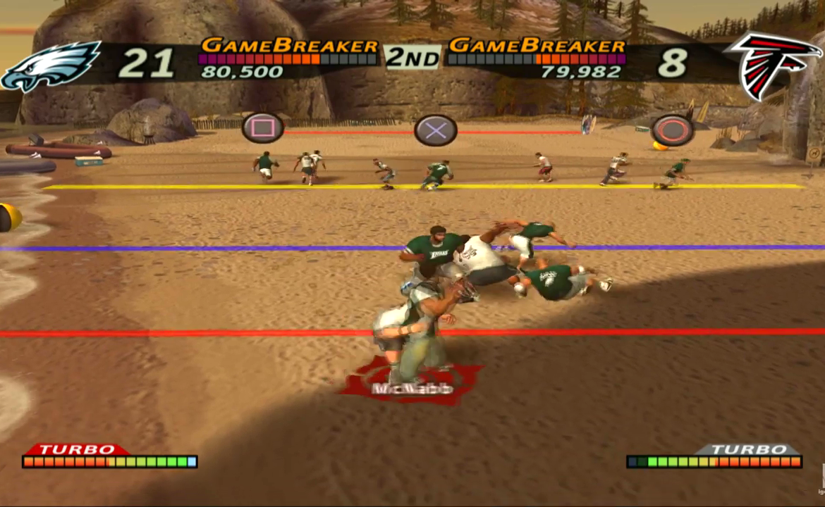 NFL Street бросает "Аве Мэри", предлагая новый взгляд на профессиональный футбол. Забудьте о громоздких щитках и строгих расстановках - эта адвенчура бросает вас в асфальтовые джунгли, чтобы устроить стремительные и высокорезультативные уличные разборки. Матчи заменяют традиционный формат "одиннадцать на один", делая ставку на скорость и ловкость ног. Нет нетронутых стадионов; проект бросает вас в уникальное городское окружение, добавляя дикости в каждый удар и прыжок.