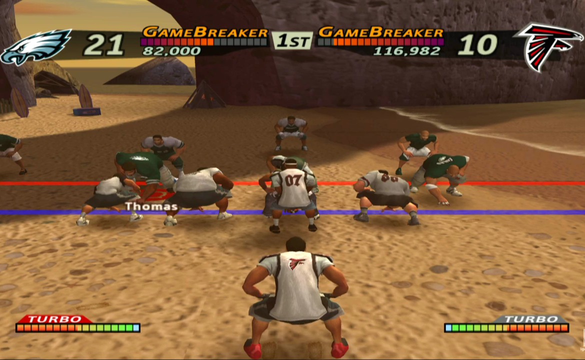 Создайте команду своей мечты в NFL Street. Тут вы можете выбрать из списка действующих звезд НФЛ и легенд железной дороги. Набирайте команду, подстраивайте ее под свое стратегическое видение и бегите по асфальту. Хотите доминировать с грозным бегуном или метким пасующим? Выбор за вами. Быстрые выставочные матчи или сезонные испытания - тайтл подходит для всех стилей игры.