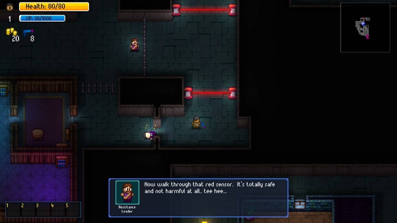 В процветающий футуристический город приходит новый мер, который вводит сухой закон. Это стало причиной бунта и хаоса в Streets of Rogue. Обитатели городка создали штаб Сопротивления, который спрятан под землей. Они планируют свергнуть жестокого диктатора, поэтому нужен герой, который выполнит эту задачу.