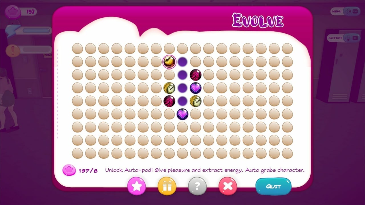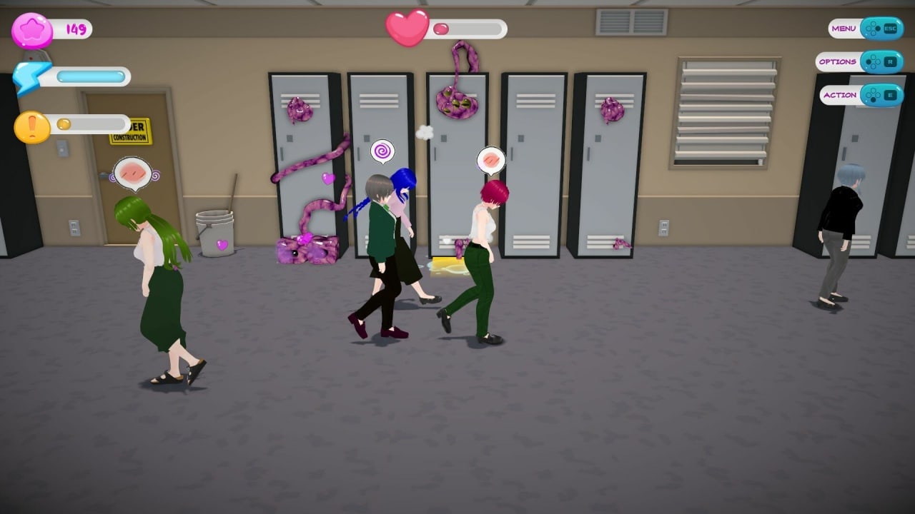 Шкафчики, кладовки, даже лифты и кабинки туалетов - ни одно место не укроется от ваших склизких придатков. Чем больше предметов вы заразите, тем сильнее станет Тентикун. Так что раскройте своего внутреннего монстра и начинайте щелкать! По мере роста силы вы будете открывать новые способности и совершенствовать свою чудовищную форму. В игре используется система очков вожделения, которая способствует развитию.