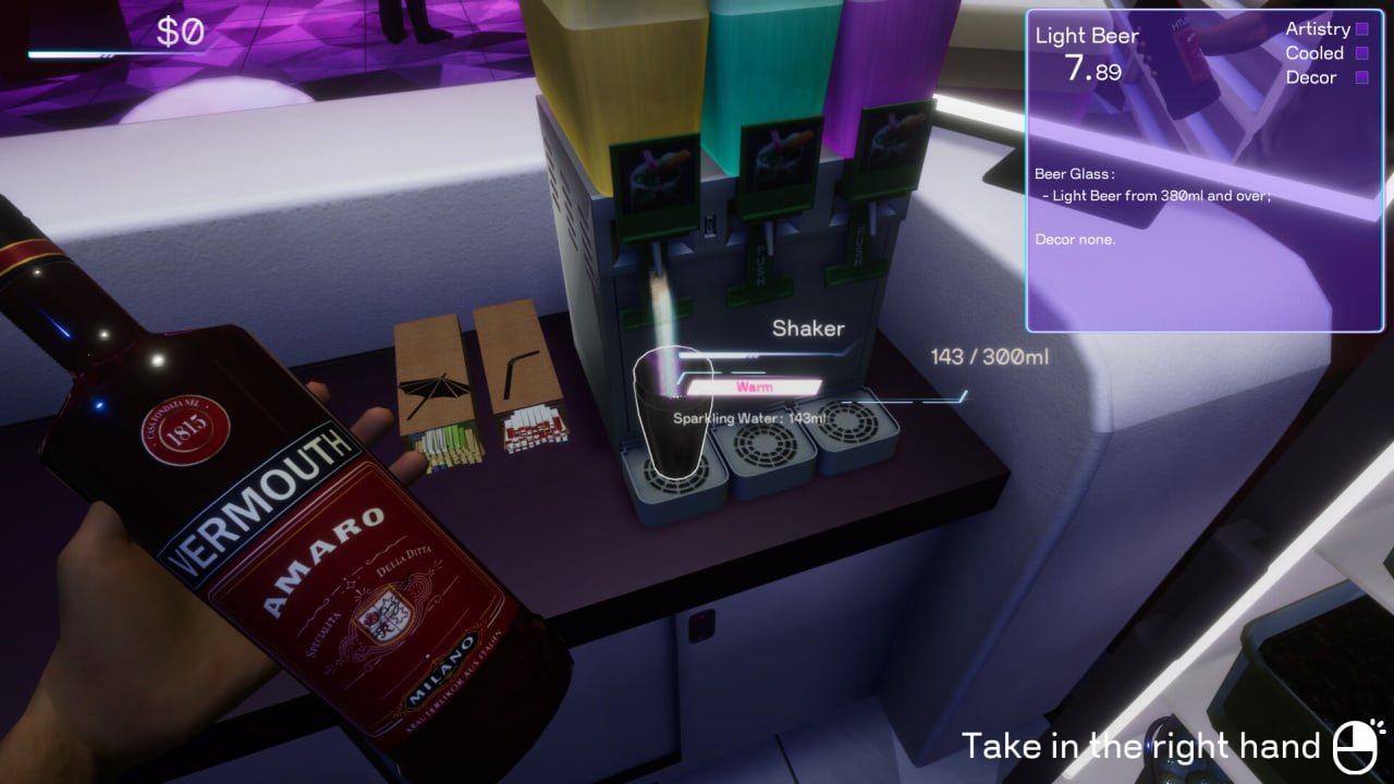 В игру встроена система репутации, которая отслеживает ваши достижения. Позитивное взаимодействие с клиентами и стабильный поток искусно приготовленных напитков приведут к росту вашей репутации. И наоборот, подача некачественных коктейлей или пренебрежительное отношение к посетителям быстро подорвут вашу репутацию. Эффективное управление репутацией имеет решающее значение для привлечения новых клиентов и поддержания процветающего бизнеса.