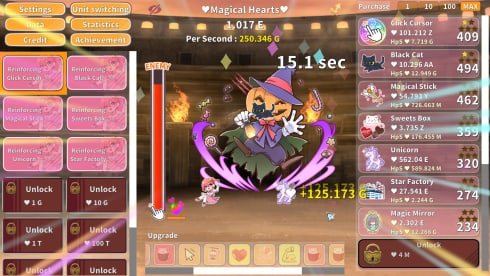 Magical Girl Clicker сочетает в себе элементы кликера и idle-игр. Геймеры берут на себя роль волшебной девочки, которой поручено собирать сердечки. Нажатие на волшебную девочку запускает специальный режим, который увеличивает скорость сбора сердец. Эти сердечки затем используются для покупки улучшений, которые еще больше повышают скорость сбора сердечек. Тут также предусмотрена система достижений, которая награждает юзеров за достижение важных рубежей. Стратегически грамотно нажимая и используя режим лихорадки, пользователи могут неуклонно наращивать коллекцию.