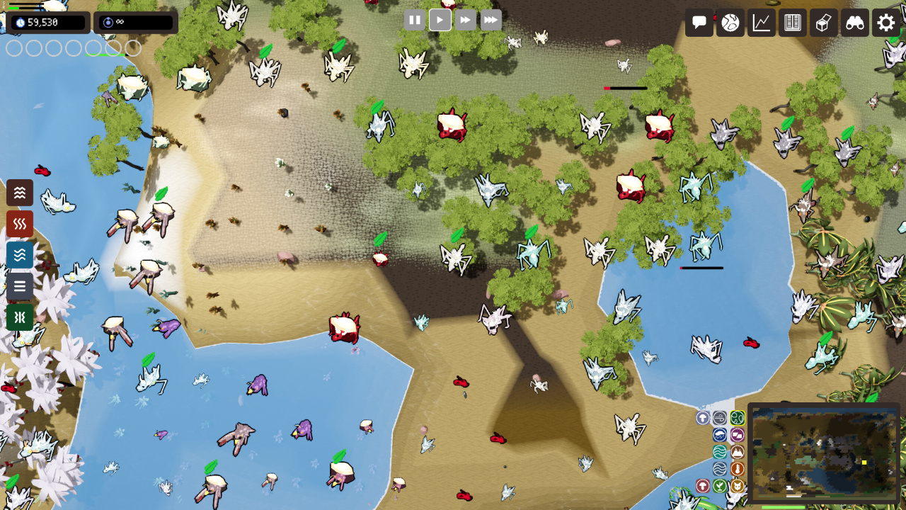 Планетарная жизнь - это не только формирование земли. Вы также станете пастырем самой жизни. Заведите одноклеточные организмы и наблюдайте за их эволюцией в сложные существа. Будете ли вы подталкивать их развитие или позволите им бороться за выживание в дарвиновской борьбе? Выбор за вами. Но "Планетарная жизнь" - это не только солнечный свет и радуга. Вы также можете сыграть роль космического трикстера. Усиливайте вулканическую активность и наблюдайте, как трескаются континенты. Устройте проливные дожди и утопите зарождающиеся формы жизни. В конце концов, иногда самые интересные истории связаны с метафорическим наблюдением за тем, как все горит.