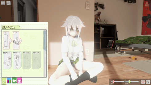 В тайтле есть меню настройки персонажа, позволяющее изменить внешность Каэдэ. Геймеры будут менять цвет кожи, волос и сосков. Кроме того, есть возможность изменить внешний вид ее мочи. Цель этих настроек не объясняется игрой. Хотя вуайеристские аспекты VoyeuR Room: No.509 понятны, но причина включения в игру мини-игр со стрельбой по мишеням менее очевидна. Возможно, элементы стрельбы призваны добавить интерактивности к вуайеристскому опыту. В качестве альтернативы они могут быть призваны отвлечь пользователей от вуайеристских элементов или обеспечить краткую передышку от них.