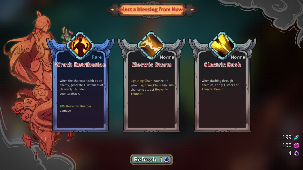 Лотосовый фонарь добавляет еще один уровень стратегии. Этот древний артефакт открывает доступ к таким божественным способностям, как манипуляция временем и время пули, давая тактические преимущества в бою. Кроме того, Lotus Lantern дает постоянные улучшения, позволяющие одолеть все более сложных противников. Непредсказуемый характер игры заставляет вас быть начеку. Случайные события подстерегают вас во время приключений, заставляя принимать сложные решения. Будете ли вы расширять границы своих возможностей, чтобы получить большее испытание, или отдадите предпочтение стабильности? Выбор за вами.
