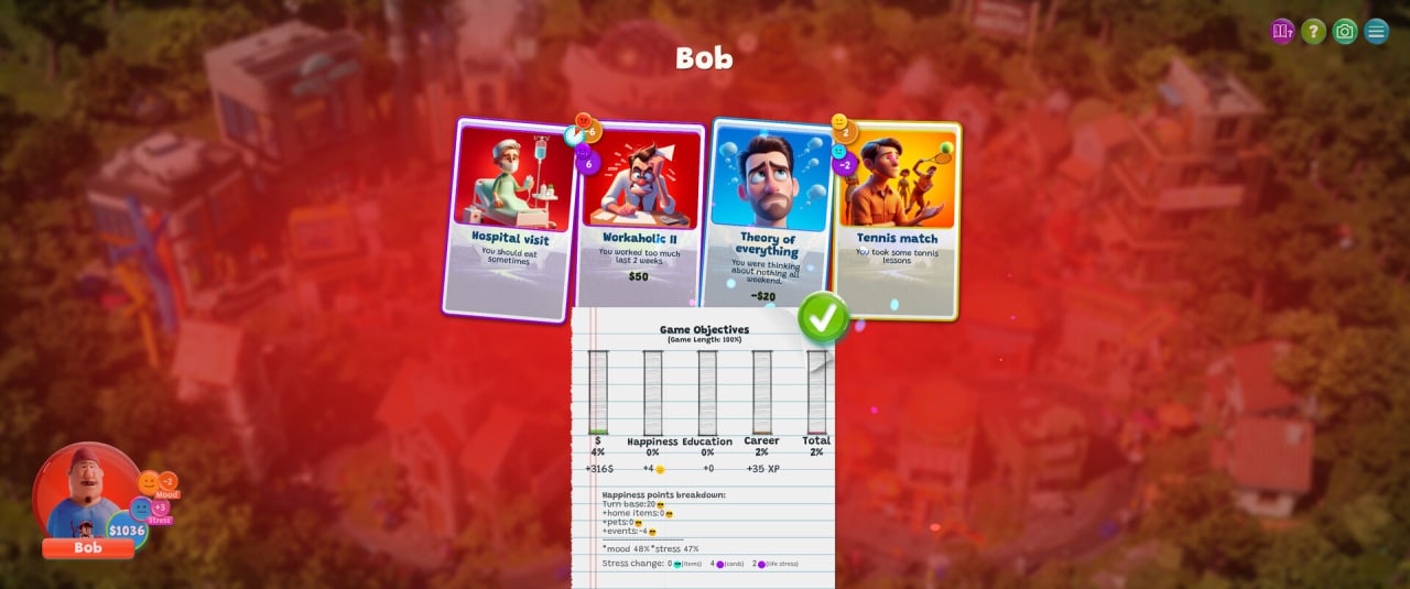 Цель Jonesville? Быть первым, кто достигнет всех четырех главных жизненных рубежей: богатства, счастья, опыта работы и образования. Но это не все солнечные лучи и розы. Вам придется жонглировать своими потребностями - от обеспечения себя питанием и поиска работы до выделения времени на досуг. Образование - это ключ к карьерному росту, и вы сможете немного побаловать себя розничной торговлей, покупая различные потребительские товары. Только будьте внимательны к тем поворотам, которые подбрасывает вам жизнь, например, неожиданным обвалам рынка, пожарам и перекрытию дорог!